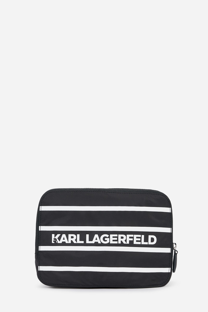 Stylový batoh, který se snadno složí do značkového pouzdra. Je vyroben z recyklovaného nylonu a zdoben nášivkou s logem KARL Ikonik. Jednobarevný design s nastavitelnými ramenními popruhy doplňuje pevné ucho na nošení a kovové zapínání na zip. Praktická kapsa na přední straně usnadňuje rychlý přístup k nezbytnostem. Vnitřní prostor s podšívkou je vybaven plochou kapsou na zip. Nepřehlédnutelný stylový doplněk, který skvěle doplní váš ležérní outfit.