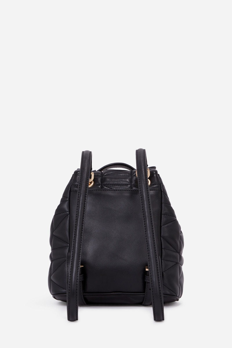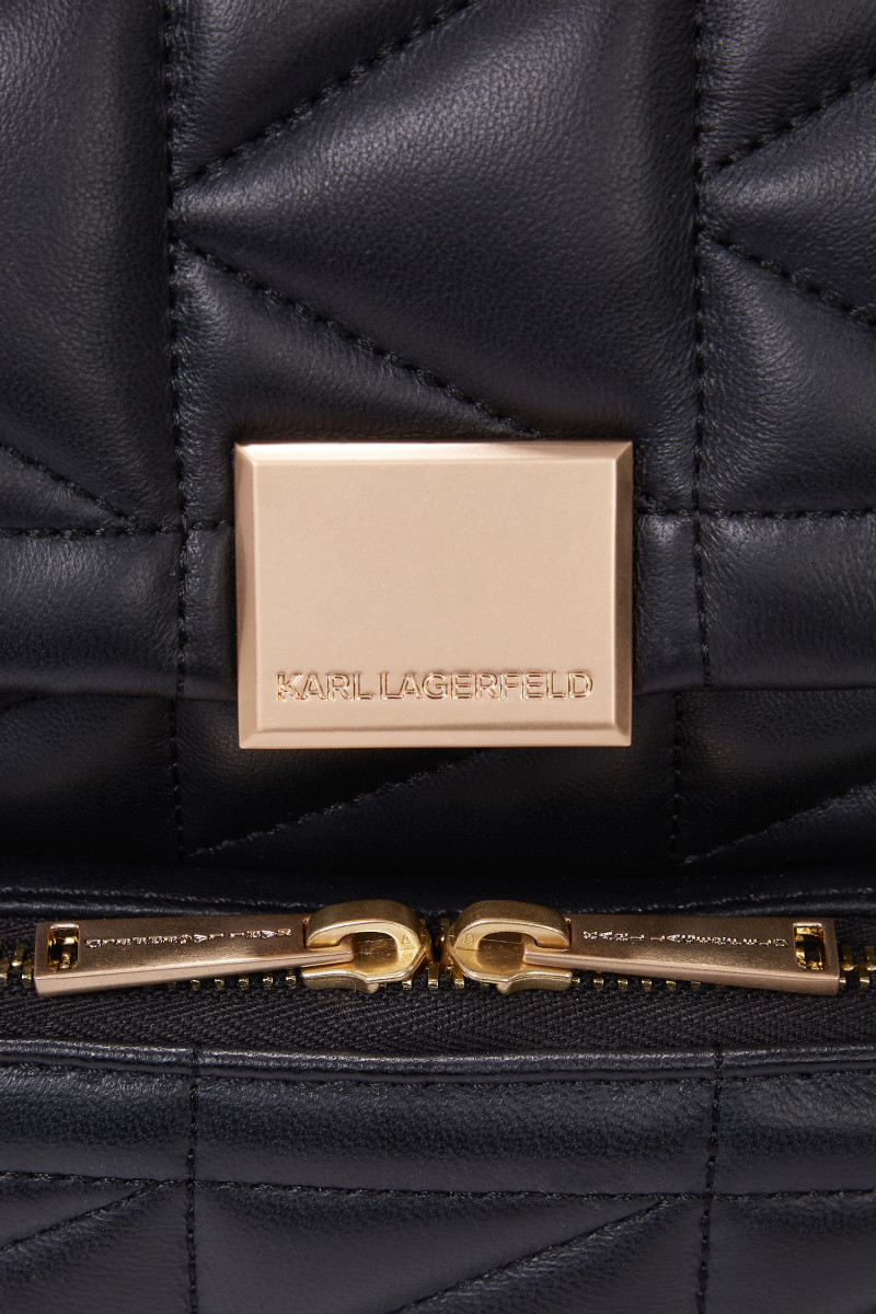Dámský batoh vyrobený z měkké ovčí kůže prvotřídní kvality, který vás zaujme svým exkluzivním vzhledem a minimalistickými detaily. Prošívaný polštářový design v praktické siluetě doplňují kožené ramenní popruhy zdobené zlatým řetízkem. Zapíná se na klopu s magnetickým uzávěrem, na které je umístěna zlatá kovová plaketa s logem Karl Lagerfeld. Prostorný interiér doplňuje přední kapsa se zapínáním na zip. Dokonale stylový doplněk v nadčasovém designu, který bude praktickým doplňkem vašich outfitů.
