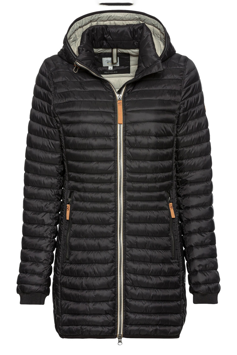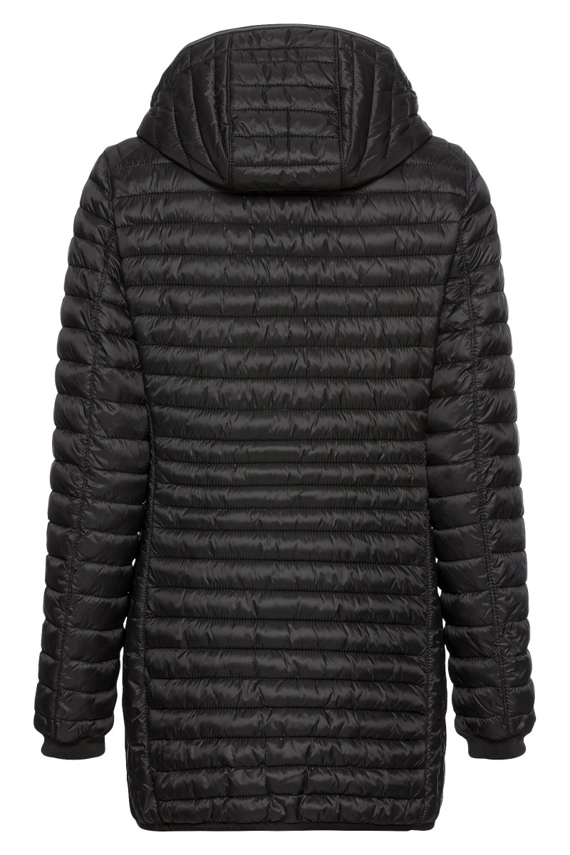 Dámská prošívaná bunda z lehkého syntetického materiálu. Vypasovaný střih s odnímatelnou kapucí, kontrastním dvojcestným zipem do stojáčku a pružnými náplety na rukávech doplňují boční kapsy na zip, kožený brand našitý na rukávu a brand poutko na zádech. Materiálové složení včetně lehké výplně zaručuje lehkost, pohodlí a nenáročnou údržbu. Tento praktický a nápaditý kousek dokonale zvýrazní každý váš sportovně laděný outfit.