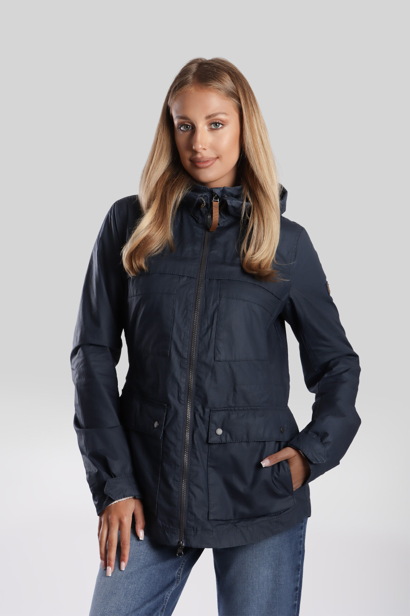 Dámská bavlněná bunda v projmutém střihu se zapínáním na dvojcestný zip. Na předním díle jsou výrazné dvě nakládané kapsy na prsou a dvě nakládané kapsy s patkou ve spodní části, šířku zakončení rukávu lze upravit zapínáním na patentku. Bunda představuje ikonický artikl sportovně-elegantních outfitů, které se těší velké oblíbenosti a nikdy nevyjdou z módy.