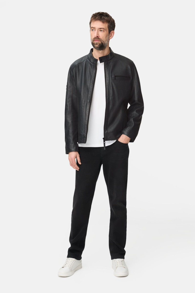 Pánská bunda z luxusní hladké kůže. Rovný, dokonale sedící střih s délkou do pasu, který je efektně zakončený rovným lemem. Zapínání na dvoucestný zip s límcem, dvě prostorné boční kapsy, kapsa na hrudi se zapínáním na zip doplňuje možnost úpravy šířky bundy v pase. Pohodlná podšívka bundy s prostornou kapsou. Bunda je příjemně měkká na dotek, hřejivá při nošení a především velmi pohodlná. Unikátní kus s nadčasovým vzhledem, který se stane investicí do Vašeho pohodlí. Univerzálně kombinovatelný kus, který zvýrazní švihácký vzhled džentlmena za každých okolností.