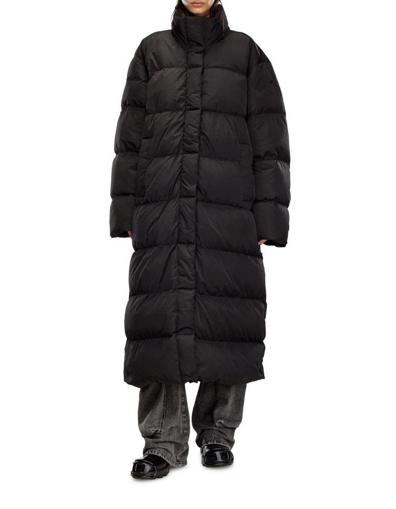 Dámská dlouhá zimní bunda v délce do půli lýtek s matným povrchem vyrobená ze 100% recyklovaného syntetického vlákna. Volný střih se zvýšeným stojáčkem doplňuje dvojitý zip se skrytou klopou, boční kapsy a vnitřní kapsa. Dlouhé rukávy jsou vybavené pružným zakončením. Materiálové složení s kvalitní výplní zaručuje dokonalou hřejivost, lehkost a příjemný pocit během nošení. Velmi pohodlný a praktický kousek, který stylově doplní váš zimní outfit. Modelka má na sobě velikost 40 a měří 175 cm.