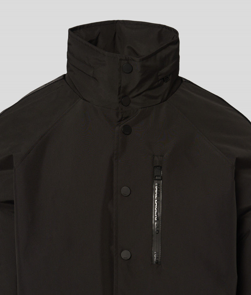 Dlouhá bunda ve stylu pouliční módy, která se vyznačuje udržitelnou konstrukcí, čistými liniemi a monochromatickými detaily. Je vyrobena z recyklovaných technických materiálů. Tónované logo KARL na zádech, skrytá kapuce a kontrastní žebrované manžety a lem povznášejí ležérní styl tohoto kousku.