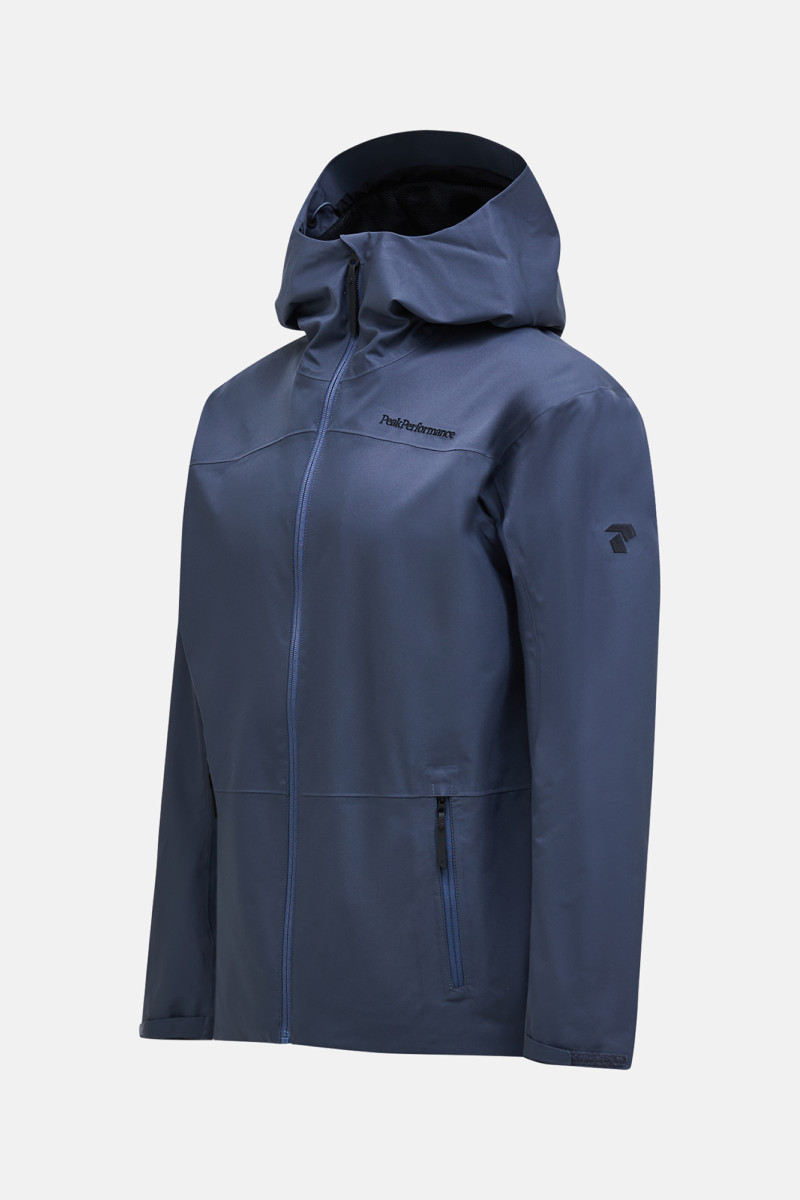 Pánská bunda s kapucí. Rovný střih, poutko na zavěšení na vnější straně krku, raglánové rukávy doplněné logem Peak Performance na hrudi a na rukávu. Bunda je vybavená velkými kapsami na ruce se zipy, vnitřní kapsou, kapucí, stejně jako spodním lemem a konci rukávů, které lze přizpůsobit střihu. Zapínání na zip vás ochrání před nepřízní počasí. Použitý materiál je odolný, vodoodpudivý bez PFC. Materiálové složení je větruodolné a nepromokavé, zatímco zůstává prodyšné pro pohodlí. Tkanina je odolná vůči větru a vodě, ale stále prodyšná. Velmi praktický a stylový kousek, který kombinuje výkon a styl pro všechna roční období, je určen pro každodenní nošení i dobrodružství v přírodě.