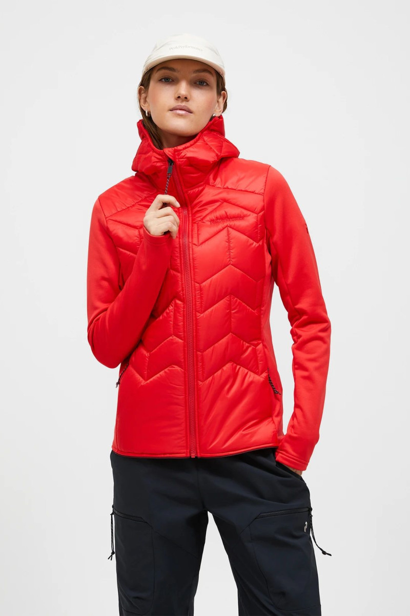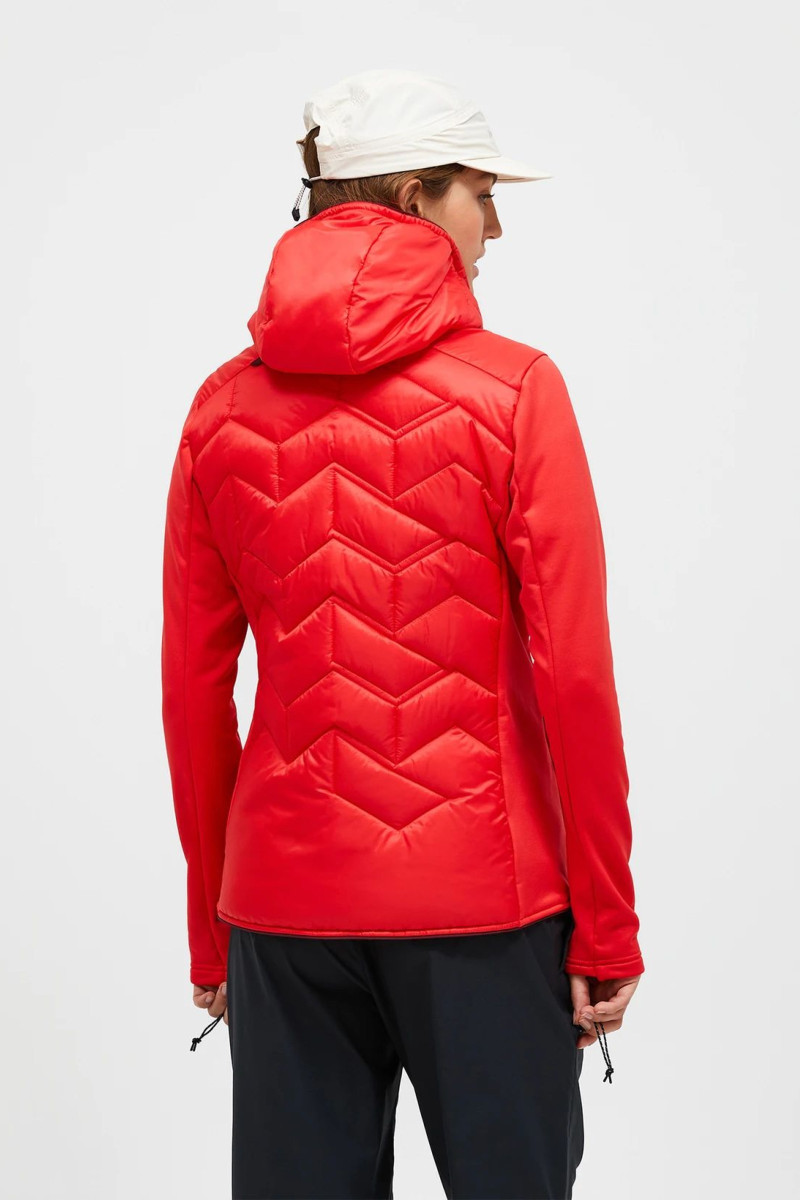 Dámská kombinovaná lehká bunda s kapucí. Úzký střih s celorozepínacím oboustranným zipem YKK, pevná kapuce, prakticky řešené kapsy na zip, vnitřní kapsa, elastické lemy v pase a kolem rukávů s otvorem na palec, značka na rukávu a nápis na hrudi. Odolná ripstopová tkanina bez PFC poskytuje střední ochranu proti vodě a větru, zatímco prodyšná syntetická izolace má mimořádně vysoký poměr tepla k hmotnosti i ve vlhkých podmínkách. Bunda, která pokryje většinu vašich potřeb na horách i mimo ně a stane se tak nedílnou součástí vašeho oblečení.