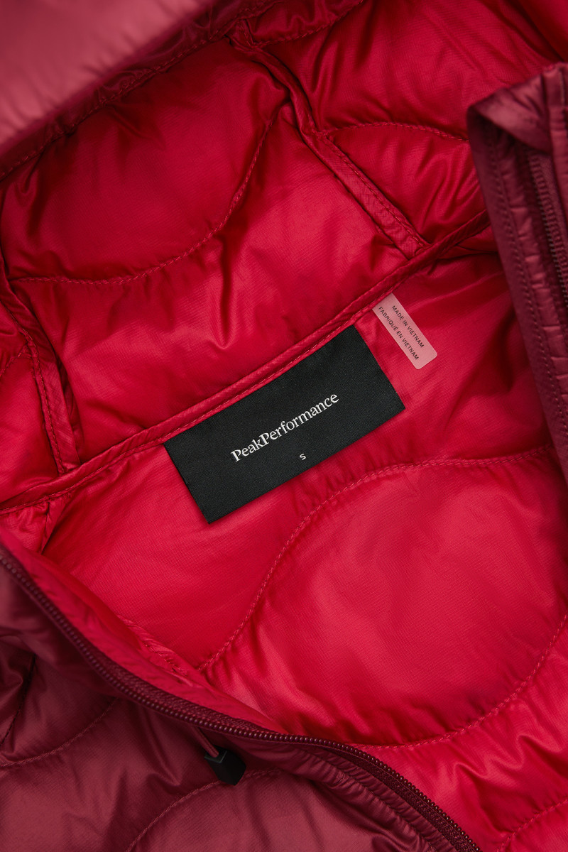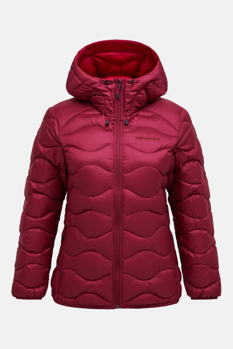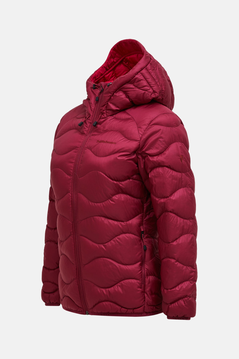 Dámská prošívaná péřová bunda se zapínáním na zip a kapucí. Rovný střih s mírně prodlouženou zadní částí doplňuje brand logo vyšité na hrudi a na rukávu, kapuce se stahováním na šňůrku, elastické rukávy a boční panely z hřejivého úpletu pro maximální prodyšnost a pohodlí při každém pohybu. Bunda má elastický lem na rukávech a v pase, poutko na zádech, boční otevřené kapsy a přední kapsu na hrudi na zip, která vám umožní vzít si s sebou menší předměty, aniž by vás omezovaly v pohybu. Kvalitní výplň z kachního peří s garancí kontrolovaného ekologického původu v poměru 90/10 ze zodpovědných zdrojů, která je plně vysledovatelná prostřednictvím programu Track My Down® a plnivostí 700 CUIN vás udrží v teple. Materiálové složení zaručuje příjemnou hřejivost, lehkost a výbornou skladnost na cestách díky jednoduchému sbalení. Vyrobeno z maximálně lehkého materiálu, recyklovaného polyamidu bez obsahu PFC, který má vodoodpudivou a větruodolnou úpravu. Velmi praktický kousek na celoroční využití, který je možné pohodlně nosit i jako spodní vrstvu pod bundu nebo sportovní kabát.