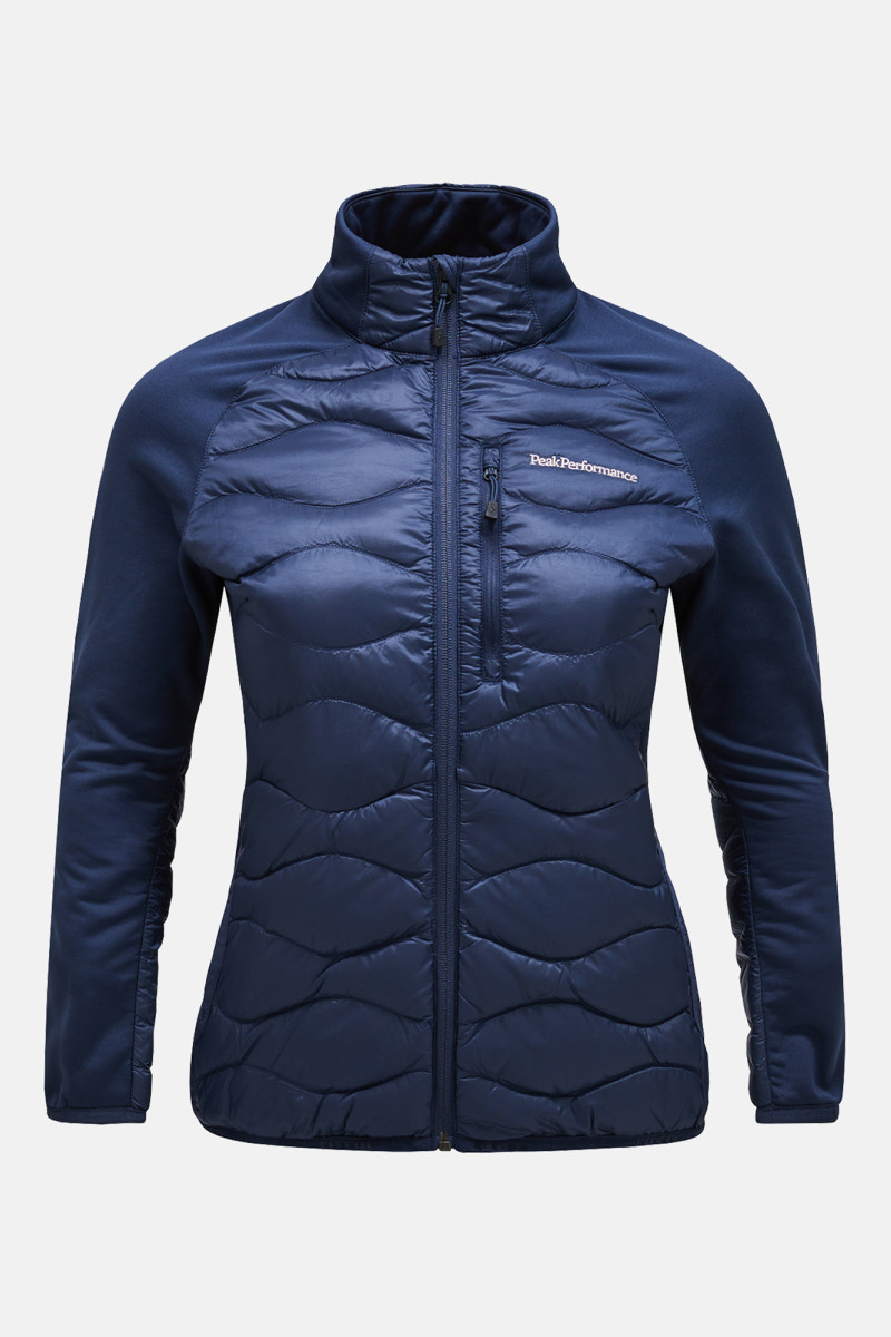 Dámská kombinovaná bunda se zapínáním do stojáčku. Úzký střih s mírně prodlouženou zadní částí doplňuje brand logo vyšité na hrudi a na rukávu, elastické rukávy a boční panely z hřejivého úpletu pro maximální prodyšnost a komfort při každém pohybu. Bunda má elastický lem na rukávech a v pase, poutko na zádech, boční otevřené kapsy a přední kapsu na hrudi na zip, která vám umožní vzít s sebou menší předměty, aniž by vás omezovaly v pohybu. Kvalitní výplň z kachního peří s garancí kontrolovaného ekologického původu v poměru 90/10 ze zodpovědných zdrojů, které je plně dohledatelné prostřednictvím programu Track My Down® a plnivostí 700 CUIN vás udrží v teple. Materiálové složení zaručuje příjemnou hřejivost, lehkost a výbornou skladnost na cestách díky jednoduchému sbalení. Vyrobena z maximálně lehkého materiálu, recyklovaného polyamidu bez obsahu PFC, který má vodoodpudivou a větruodolnou úpravu. Velmi praktický kousek na celoroční využití, který je možné pohodlně nosit i jako spodní vrstvu pod bundu nebo sportovní kabát.