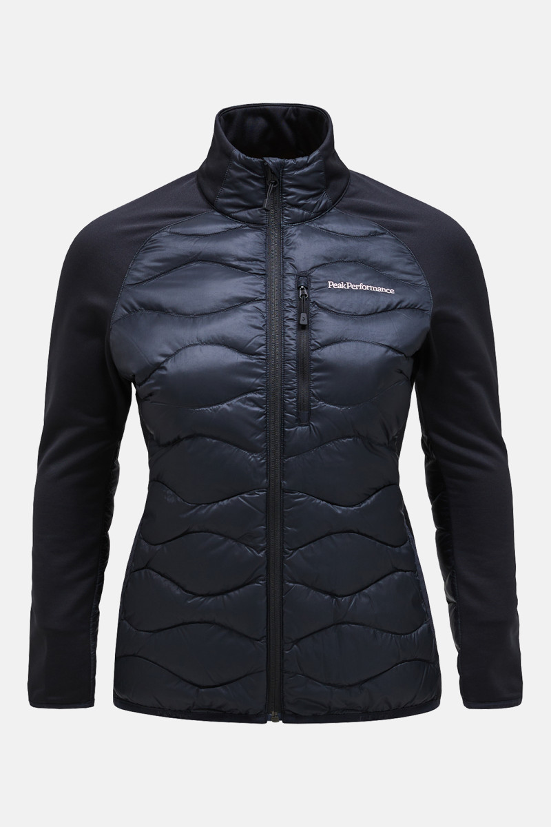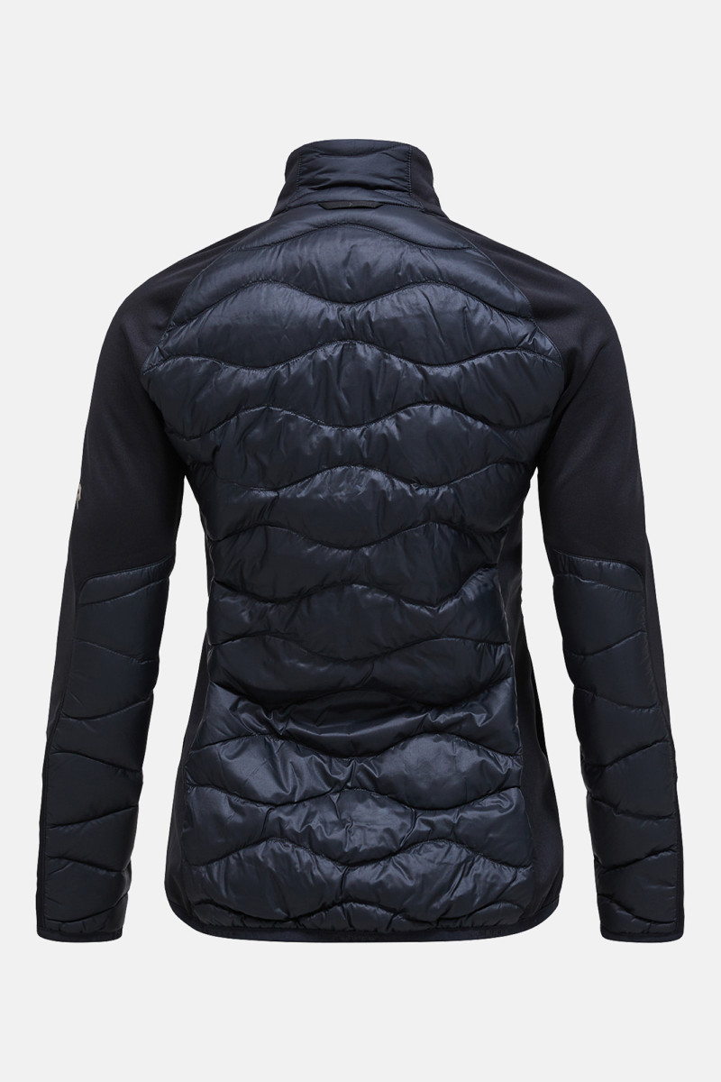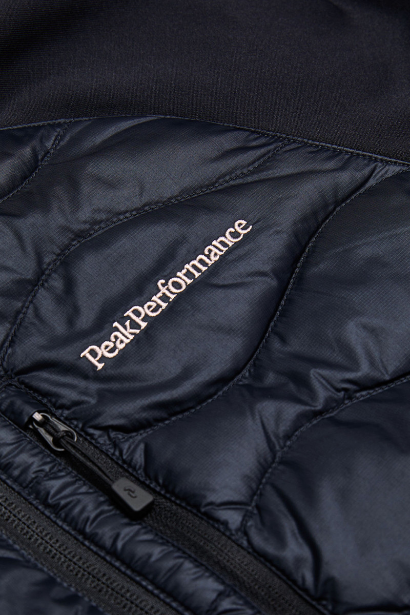 Dámská kombinovaná bunda se zapínáním vedoucím do stojáčku. Úzký střih s mírně prodlouženou zadní částí doplňuje logo značky vyšité na hrudi a rukávech, elastické rukávy a boční panely z hřejivého úpletu pro maximální prodyšnost a pohodlí během každého pohybu. Bunda má elastický lem na rukávech a v pase, poutka na zádech, otevřené boční kapsy a přední náprsní kapsu na zip, která vám umožní vzít si s sebou menší věci, aniž by vás omezovala v pohybu. Kvalitní výplň z kachního peří v poměru 90/10 se zárukou kontrolovaného ekologického původu ze zodpovědných zdrojů, které jsou dohledatelné s pomocí programu Track My Down® a s plnivostí 700 CUIN vás udrží v teple. Složení materiálu zajišťuje příjemnou hřejivost, lehkost a vynikající skladnost na cestách díky snadnému sbalení. Vyrobeno z maximálně lehkého materiálu, recyklovaného polyamidu bez PFC, který má vodoodpudivou a větruodolnou úpravu. Velmi praktický kousek pro celoroční použití, který lze pohodlně nosit i jako základní vrstvu pod bundu nebo sportovní kabát.