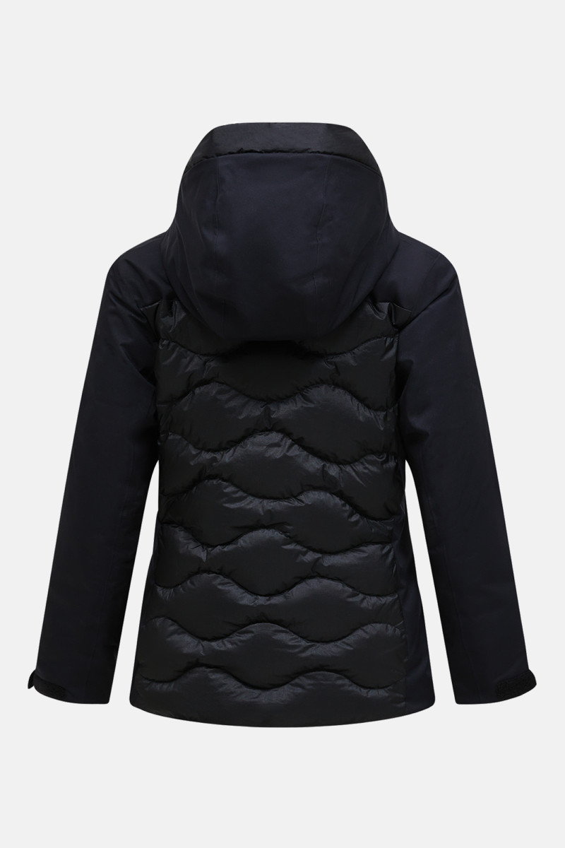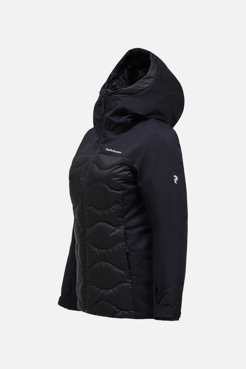 Dámská lyžařská bunda z řady Helium. Rovný střih, hybridní konstrukce kombinuje syntetickou izolaci a peří v poměru 90/10, které pochází z odpovědných zdrojů a je plně sledovatelné prostřednictvím programu Track My Down®, a které vás udrží v teple během chladných dnů na sjezdovce. Mezi lyžařské funkce patří RECCO® Rescue System, sněhová sukně s cvakacím systémem na kalhoty, kapsa na skipas a nastavitelná kapuce jednou rukou. Bunda je vyrobena z velmi lehkého materiálu, který má větru a voděodolnou povrchovou úpravu bez PFC a poskytuje dobrou ochranu před nepříznivým počasím. Velmi praktický kousek pro celoroční využití, který je možné pohodlně nosit i jako spodní vrstvu pod bundu nebo sportovní kabát.