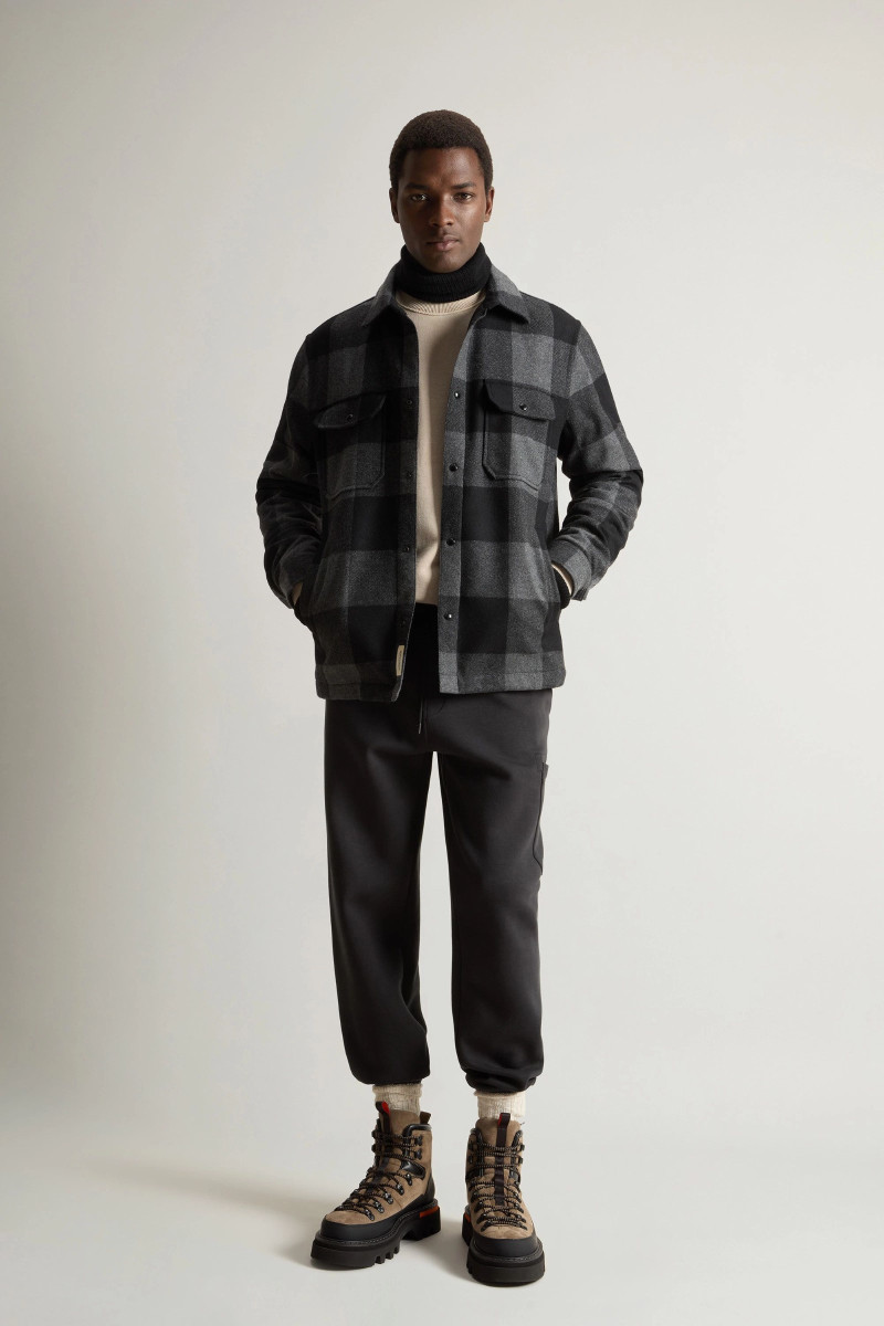 BUNDA WOOLRICH ALASKAN WOOL CHECK OVERSHIRT CHARCOAL BUFFALO