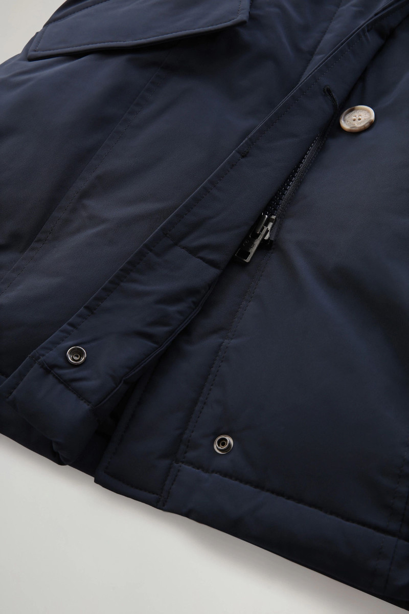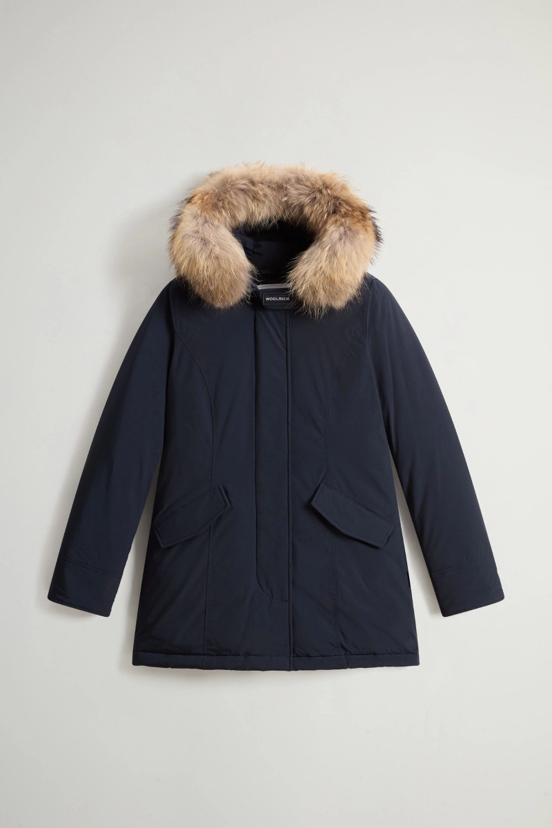 Dámská zimní bunda s větruodolným a voděodpudivým povrchem. Úzký střih s dvoucestným zipem překrytým légou a zapínáním na knoflíky doplňují pružné manžety na rukávech a dvě šikmé boční kapsy s patkou. Nechybí decentní label s logem Woolrich našitý u krku a na boku. Kapuce bundy je ozdobena odnímatelným lemem z pravé kožešiny. Prošívaný interiér je opatřen výplní z kachního peří v poměru 70/30 zaručující dokonalou prodyšnost, hřejivost a příjemný pocit při nošení. Velmi stylový kousek, který vám poskytne maximální komfort i v těch nejchladnějších dnech.