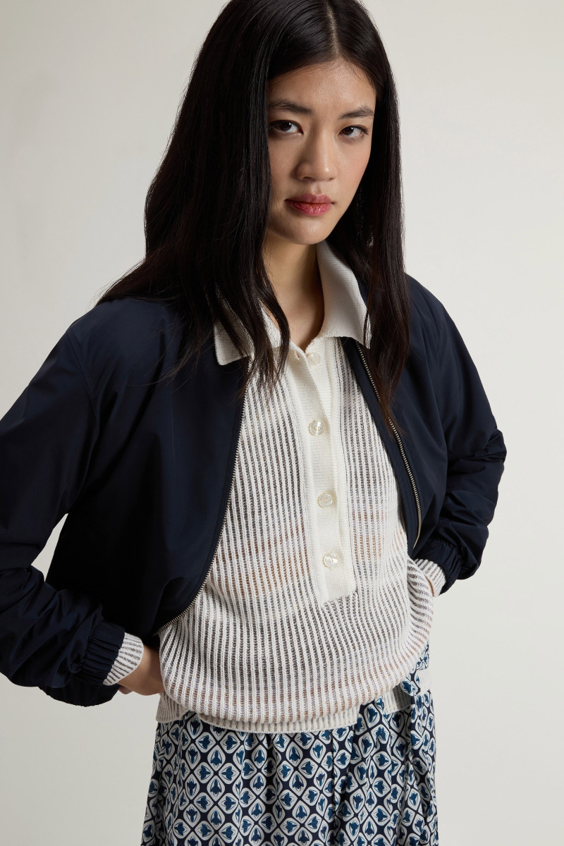 Dámská bunda z velmi lehkého materiálu, který má větru odolnou a vodoodpudivou povrchovou úpravu. Jednobarevný design s žebrovaným lemem u krku a dvoucestným zipem na zapínání doplňují praktické boční kapsy a elastické lemy v pase a na rukávech. Nechybí štítek s logem Woolrich umístěný na levém boku. Tento všestranný kousek stylově doladí váš jarní outfit.