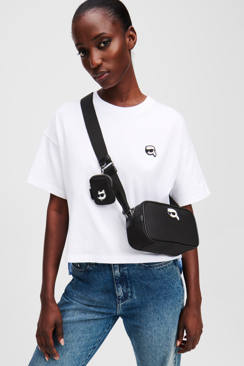 Základní pouliční doplněk zdobí nová generace grafiky Ikonik Karl a elegantní popruh s logem KARL. Tato ležérní crossbody taška je vyrobena z recyklovaného nylonu a patří do kolekce K/Ikonik 2.0, v níž jsou nejprodávanější doplňky obohaceny o novou grafiku Ikonik Karl, inspirovanou nejprodávanější digitální kolekcí NFT.