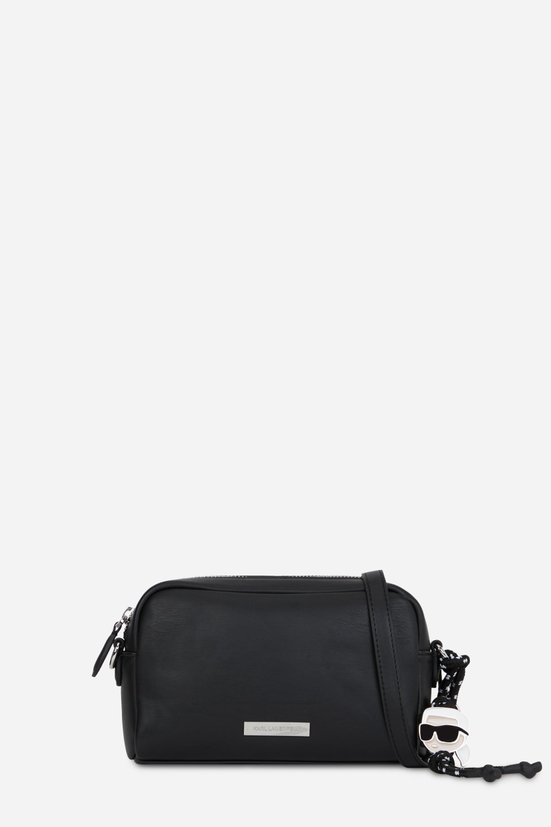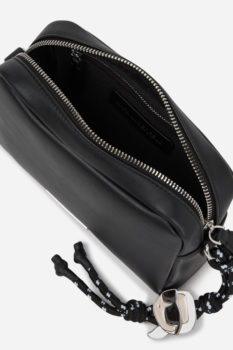Dámská crossbody kabelka, která vás zaujme svým vzhledem a praktičností. Elegantní kamerový tvar s uzavíráním na zip, zdobený přívěskem s logem Ikonik Karl a kovovým logem na přední straně. Součástí kabelky je odnímatelný a nastavitelný koženkový popruh. Vnitřek je vybaven boční kapsou na zip. Materiálové složení z technické kůže prémiové kvality je velmi pevné a odolné, přitom si zachovává svůj luxusní vzhled. Nepřehlédnutelný a stylový doplněk, který dotáhne váš outfit k dokonalosti.