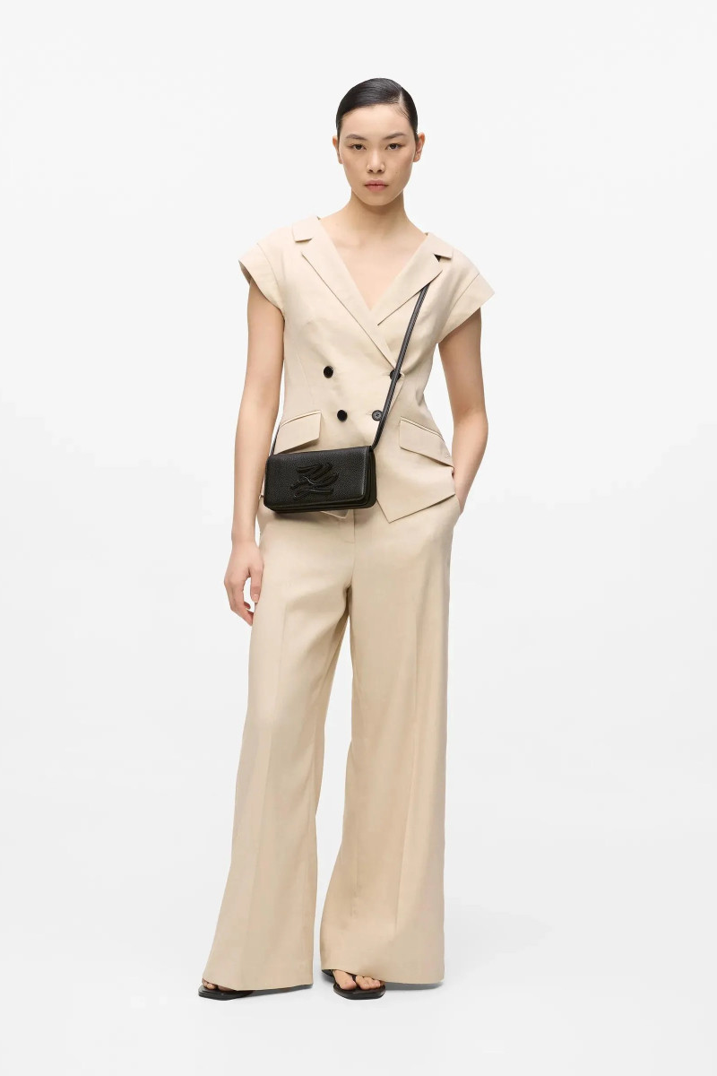 Dámská crossbody kabelka z hladké hovězí kůže prémiové kvality, která vás zaujme svým luxusním vzhledem a originálními detaily. Prodloužený design se strukturovaným povrchem se zapínáním na magnetickou klopnu zdobenou tónovým logem Karl Signature. Podšitý interiér je vybaven vnitřními přihrádkami na karty a samostatnou přihrádkou se zapínáním na zip. Hovězí kůže prémiové kvality je velmi pevná a odolná, přitom si zachovává svůj luxusní vzhled. Nezaměnitelně stylový doplněk, který doladí váš outfit k dokonalosti.