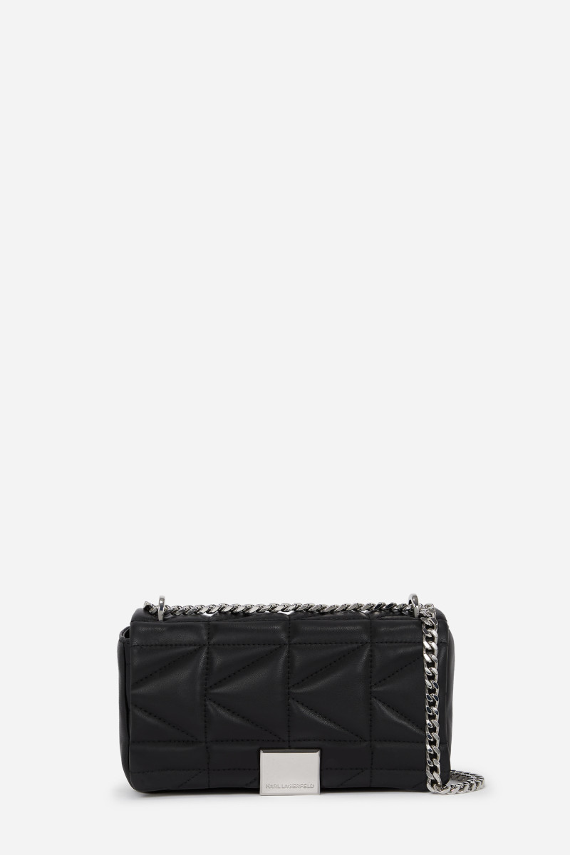 Dámská crossbody kabelka vyrobená z měkké ovčí kůže prvotřídní kvality, která vás zaujme svým exkluzivním vzhledem a minimalistickými detaily. Prošívaný polštářkový design v praktické podlouhlé siluetě doplňuje klopa s magnetickým zapínáním a zlatá kovová plaketa s logem Karl Lagerfeld. Nechybí řetízkový ramenní popruh s nastavitelnou délkou. Vnitřní prostor s podšívkou je vybaven plochou kapsou a aplikací s logem. Ovčí kůže prémiové kvality je velmi pevná a odolná, přitom neztrácí svůj luxusní vzhled. Nepřehlédnutelný stylový doplněk, který doladí váš outfit k dokonalosti.