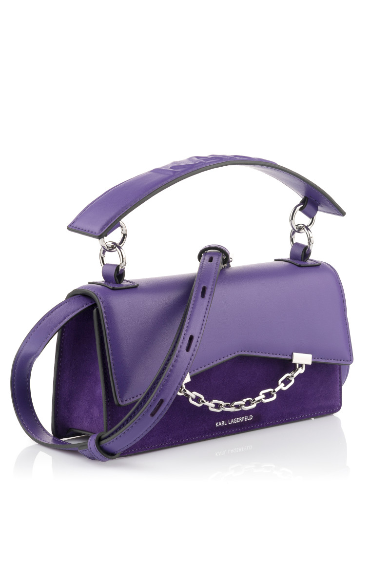 Dámská crossbody kabelka vyrobená z hovězí kůže prvotřídní kvality v kombinaci s hladkými a broušenými částmi, která vás zaujme svým exkluzivním vzhledem a rockově elegantními detaily. Strukturovaný design se zrnitým povrchem doplňuje klopa s magnetickým zapínáním a stříbrné logo Karl Lagerfeld. Nechybí ani řetízkový popruh přes rameno. Vnitřní prostor je vybaven plochou kapsou. Kvalitní hovězí kůže je velmi pevná a odolná, přičemž neztrácí svůj luxusní vzhled. Nezaměnitelný stylový doplněk, který doladí váš outfit k dokonalosti.