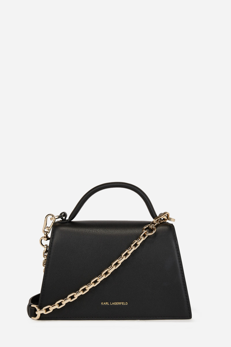 Dámská kožená crossbody kabelka K/SIGNATURE má lichoběžníkovou siluetu a zkosené logo na klopě, která se zapíná na magnet. Vyrobeno z vysoce kvalitní hovězí kůže. Kabelka má odnímatelný řetízek a řemínek z hladké kůže pro všestranný styling. Nesporně elegantní a vždy praktický doplněk k vašim outfitům.