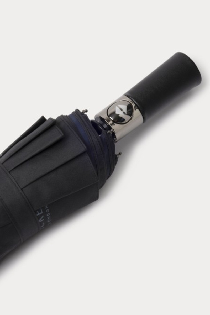 Univerzální, skládací deštník, který bude výrazným doplňkem vaší tašky nebo kabelky. Klasický design v černém provedení s kontrastním logem Hackett na vnějším okraji. Deštník je vybaven ochranným obalem a automatickým otevíráním. Nepřehlédnutelně stylový a elegantní doplněk, díky kterému vám deštivé dny nikdy nepokazí náladu.