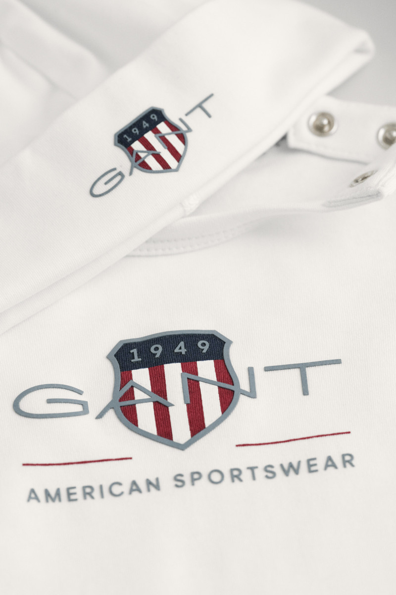 Novorozenecký set složený z dlouhorukávového body a čepičky s vyšitým nápisem brandu na variabilně nastavitelném, spodním lemu. Gant logo ve stejném provedení na hrudi. Praktické rozpínání na patentky u krku, pro pohodlné oblékání, doplňují dvě řady patentek mezi nožičkami, díky kterým vydrží miminku body o něco déle. Sametově hebký žerzej je tvořený bavlněným vláknem organického původu s GOTS certifikací, které vyniká neobyčejnou měkkostí, dokonalou prodyšností však příjemnou hřejivostí. Unikátní komplet, který zajistí Vašemu miminku maximální komfort a spokojenost v průběhu nošení.