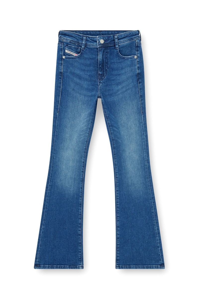 Dámské zvonové džíny. Bootcut styl s nízkým pasem a vyšším krytím zadní části. Tyto populární klasické slim džíny v bohémském designu obepínají postavu od boků až ke kolenům. Rozšíření od směrem dolů vytváří nádhernou ženskou siluetu lichotící všem typům postavy. Tmavě modrý, indigový wash je vyroben z elastického denimu ze 100% regenerační bavlny. Poutavý Diesel DNA vzhled je nadčasový a univerzální. Zapínání na zip. Velikost odpovídá běžnému značení, při výběru zvolte svou obvyklou velikost. Modelka má na sobě velikost 26 a měří 175 cm.