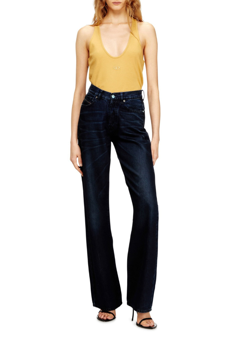 Dámské rovné džíny. Regular střih s volnými rovnými nohavicemi. Vyrobeny z fix tkaniny s organickou bavlnou a TENCEL Lyocellem, s měkkým a splývavým efektem. Vysoký pas je navržen tak, aby vytvářel tvar V vpředu, čímž zvýrazňuje ženskou siluetu a poskytuje zároveň pohodlí. Model tak ztělesňuje klasickou eleganci. Tmavě modrý wash, charakterizovaný intenzivními variacemi tónů dosažených řemeslným zpracováním, je součástí DNA kolekce značky Diesel a nabízí ikonický pohled na tradiční denim této značky. Na každém kusu jsou ručně broušeny výrazné kontrastní vousky. Černé zemité pigmenty a techniky stříkání zvýrazňují hloubku a texturu připomínající nečistoty. Zapínání na knoflíky. Modelka má na sobě velikost 26 a měří 175 cm. Velikost odpovídá běžnému značení, při výběru zvolte svou obvyklou velikost.