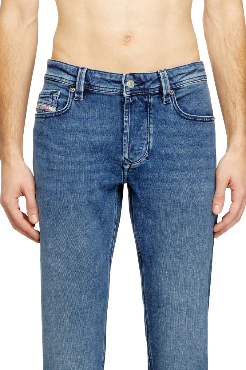 Pánské regular džíny se sníženým pasem. Střih je navržen tak, aby vyhovoval různým typům postav. Pohodlný denim je vyroben z 50% organické bavlny a je obohacen o sotva viditelné vousky pro jemný plastický efekt. Lehce zúžené rovné nohavice definují siluetu s dostatečným prostorem v pase i na stehnech. Pětikapsový design s poutky na opasek doplňuje ikonický štítek Diesel Industry našitý na zadní straně. Tato sepraná varianta ve středně modré Diesel DNA barvě dodává čistý a decentní vzhled. Zapínání na knoflíky. Model má na sobě velikost 32 a měří 182 cm.