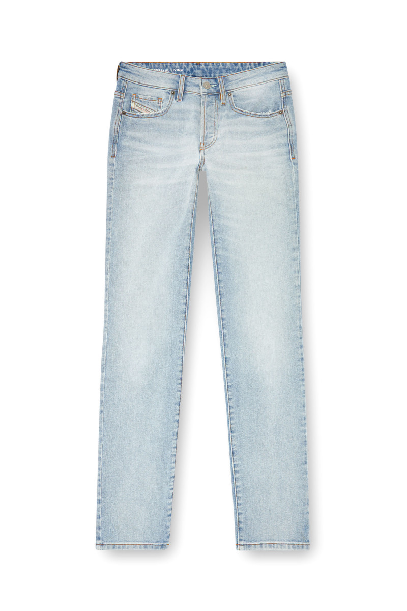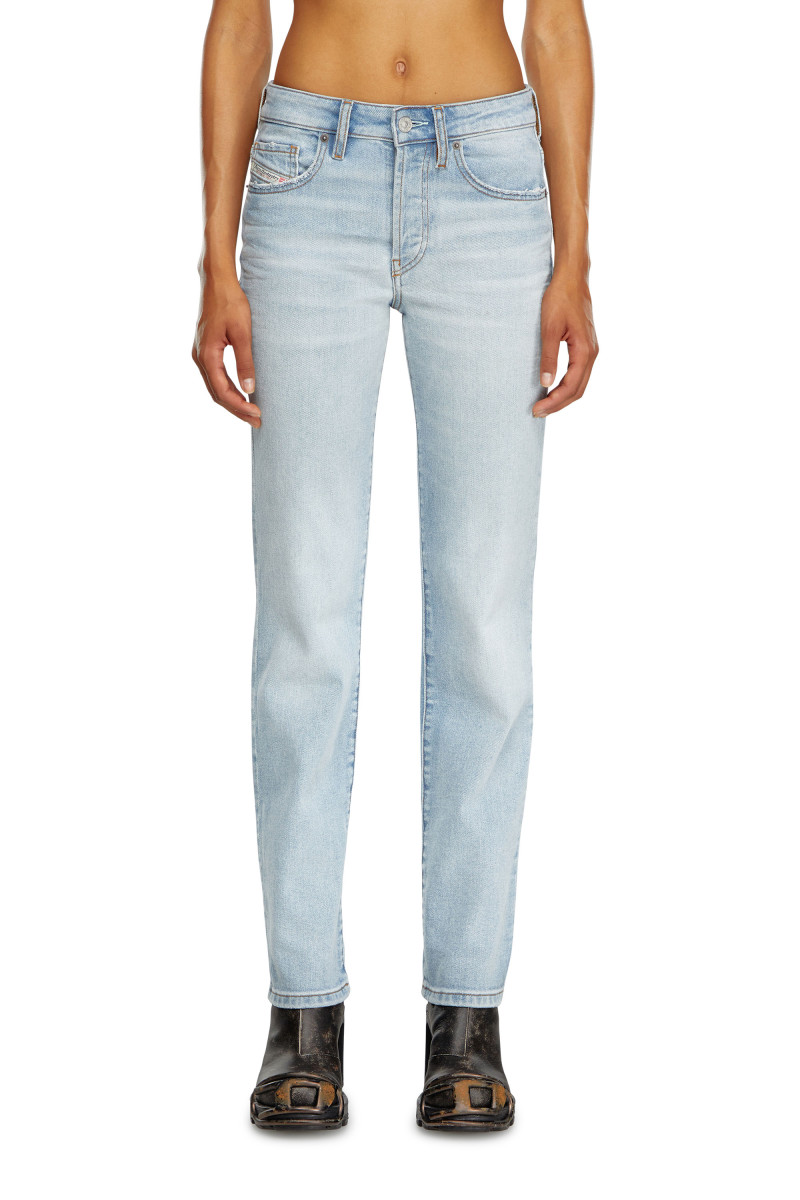 Dámské úzké džíny s pravidelným tvarovaným pasem a rovnou nohavicí. Tato moderní silueta se snadno nosí a vytváří autentický postoj. Jsou zakončené jacrónovou aplikací na zádní části a vyšívaným D. Zapínání na knoflíky. Vyrobeno z pohodlného denimu z částečně recyklované bavlny smíšené s příměsí stretche. Má čistý světle modrý prací odstín. Modelka je 177 cm vysoká, v pase měří 62 cm. Velikost odpovídá skutečnosti, zvolte si, prosím, svou běžnou velikost.