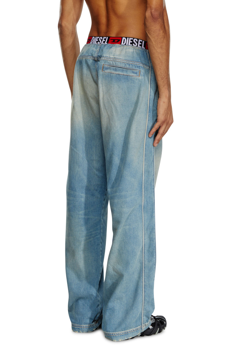 Pánské džíny s běžným pasem a rovnou nohavicí. Silueta odkazuje na pouliční a hiphopovou kulturu a má výrazný elastický pas s gumou, který zdobí kontrastní logo Diesel. Tyto světle modré seprané kalhoty s vybledlými detaily, vyrobené z pohodlného denimu, jsou doplněny zadní kapsou. Model měří 185 cm a v pase 75 cm. Velikost odpovídá skutečnosti, na nošení si zvolte, prosím, svou obvyklou velikost.