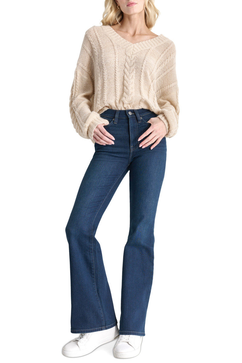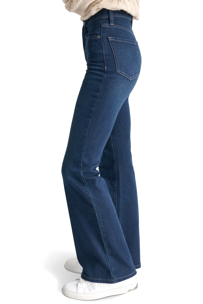 Dámské džíny s úzkým střihem nohavic, který se od kolen dolů rozšiřuje do zvonového tvaru. Sportovně-elegantní design s vyšším pasem, pěti kapsami a poutky na pásek doplňuje zapínání na knoflík a zip a štítek s logem DKNY nad zadní kapsou. Prvotřídní směs bavlny a viskózy utkaná v mírně odlehčené gramáži dodává pocit mimořádné měkkosti a pohodlí. Skvěle padnoucí kousek, který stylově doplní váš každodenní outfit.