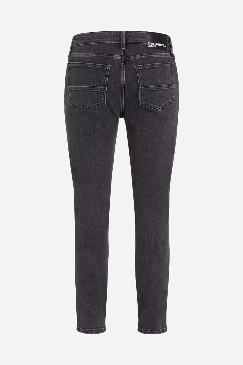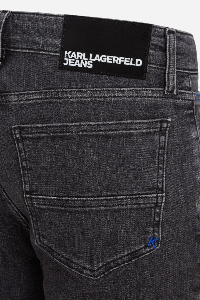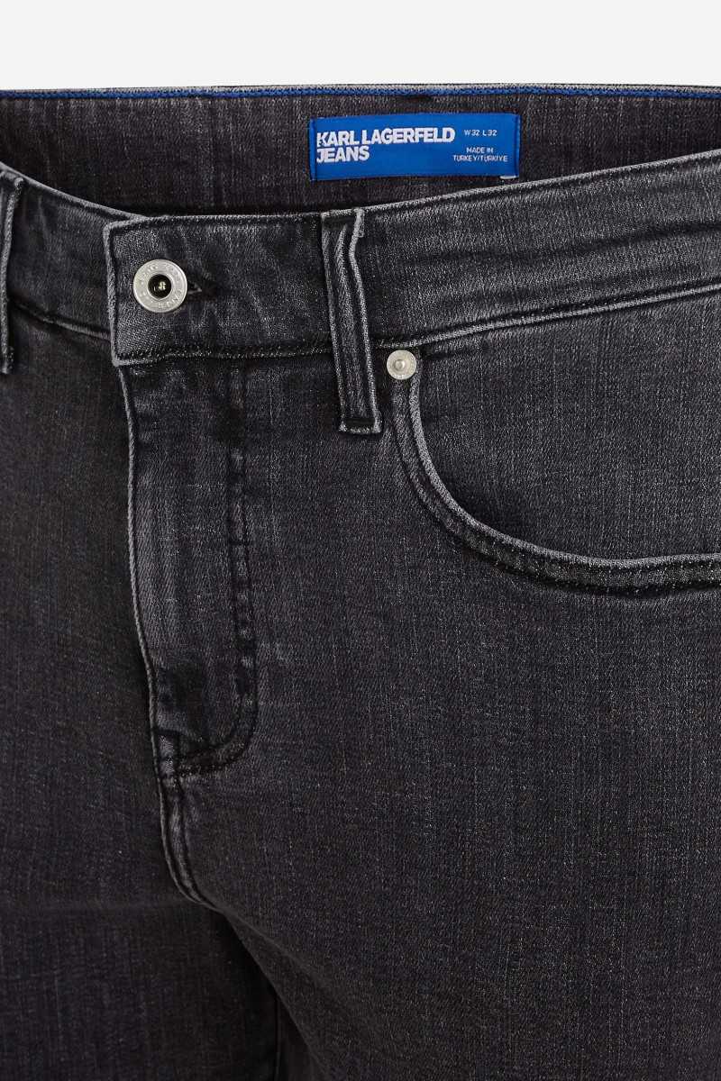 Pánské úzké džíny v úzkém slim střihu se středně vysokým pasem a zapínáním na zip. Klasický model s pěti kapsami v tmavě šedém barevném provedení je základem univerzálního šatníku. Zdobí je kožený štítek s vytištěným logem Karl Lagerfeld Jeans na zadní straně spolu s kontrastní iniciálou K vyšitou na zadní kapse. Kvalitní materiálové složení tvoří dokonale prodyšná tkanina z bavlněného vlákna prvotřídní kvality spolu s příměsí elastanu, který zaručuje elasticitu a maximalizuje příjemný pocit během nošení. Dokonalý a nadčasový kousek do vašeho šatníku, který nabízí mnoho možností stylingu.