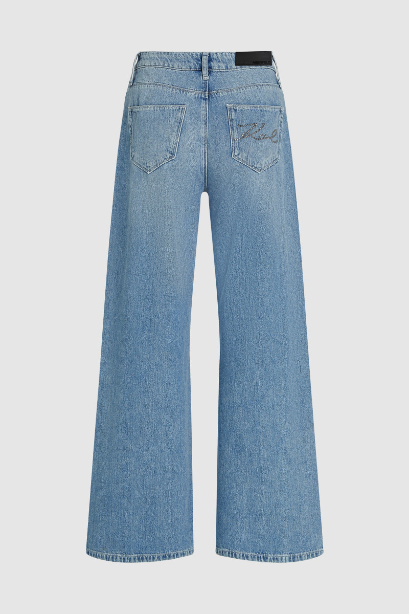 DŽÍNY KARL LAGERFELD STUD DETAIL DENIM PANTS LIGHT BLUE DENIM