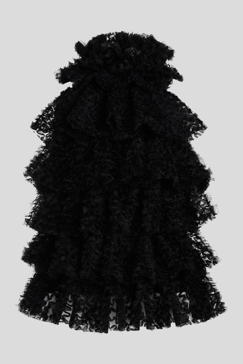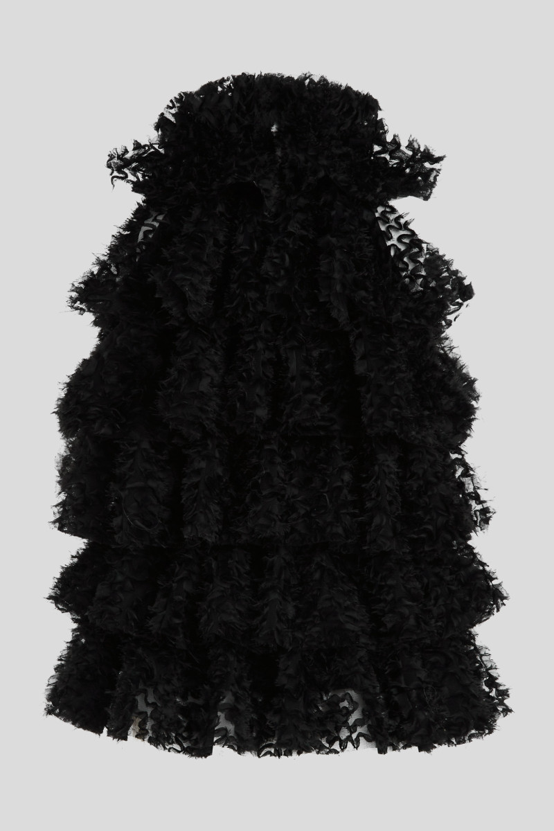 HALENKA KARL LAGERFELD KARL STUDIO RUFFLE MESH TOP BLACK