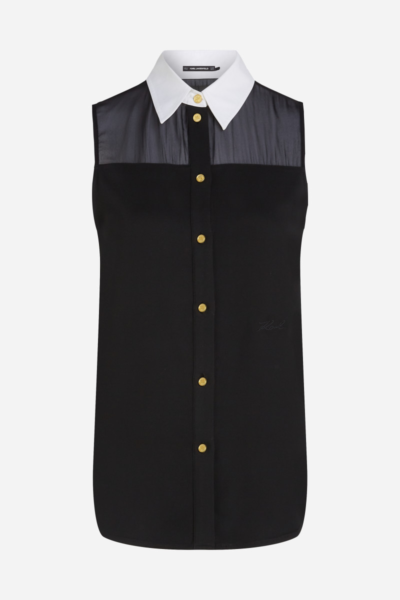 HALENKA KARL LAGERFELD POPLIN COLLAR SLVLS BLOUSE BLACK