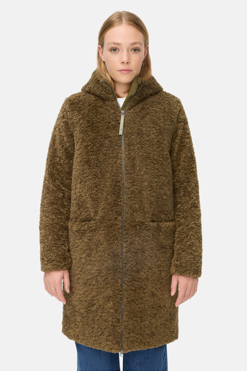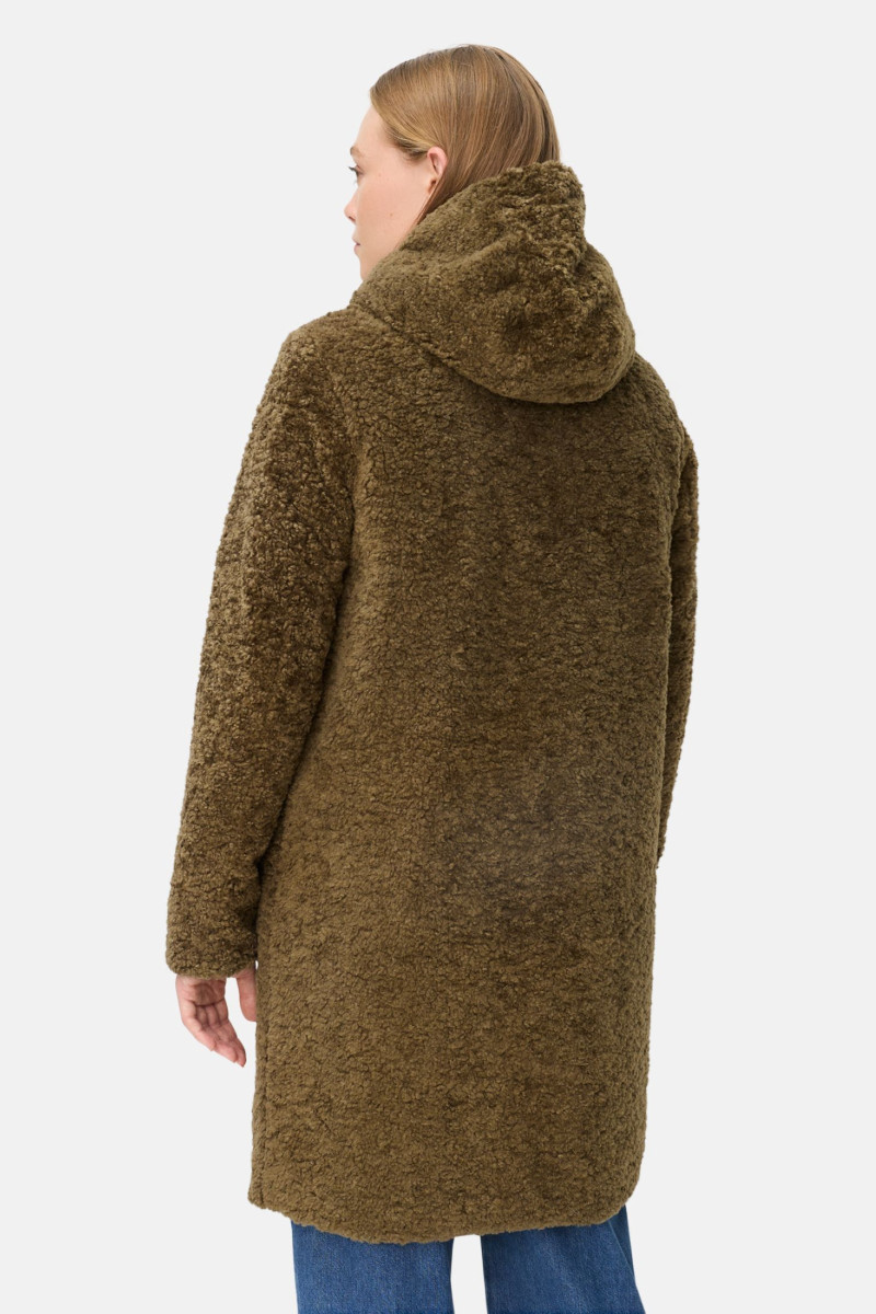Dámský zimní eco-beránek Teddy kabat s kapucí. Delší, rovný střih. Dvě velké nakládané kapsy na přední straně, výrazný dvojcestný zip na zapínání. Je odolný vůči větru a velmi pevný. Kvalitní výplň je maximálně výhřevná. Luxusní vzhled, moderní a velmi stylové, jednoznačně must have sezóny.