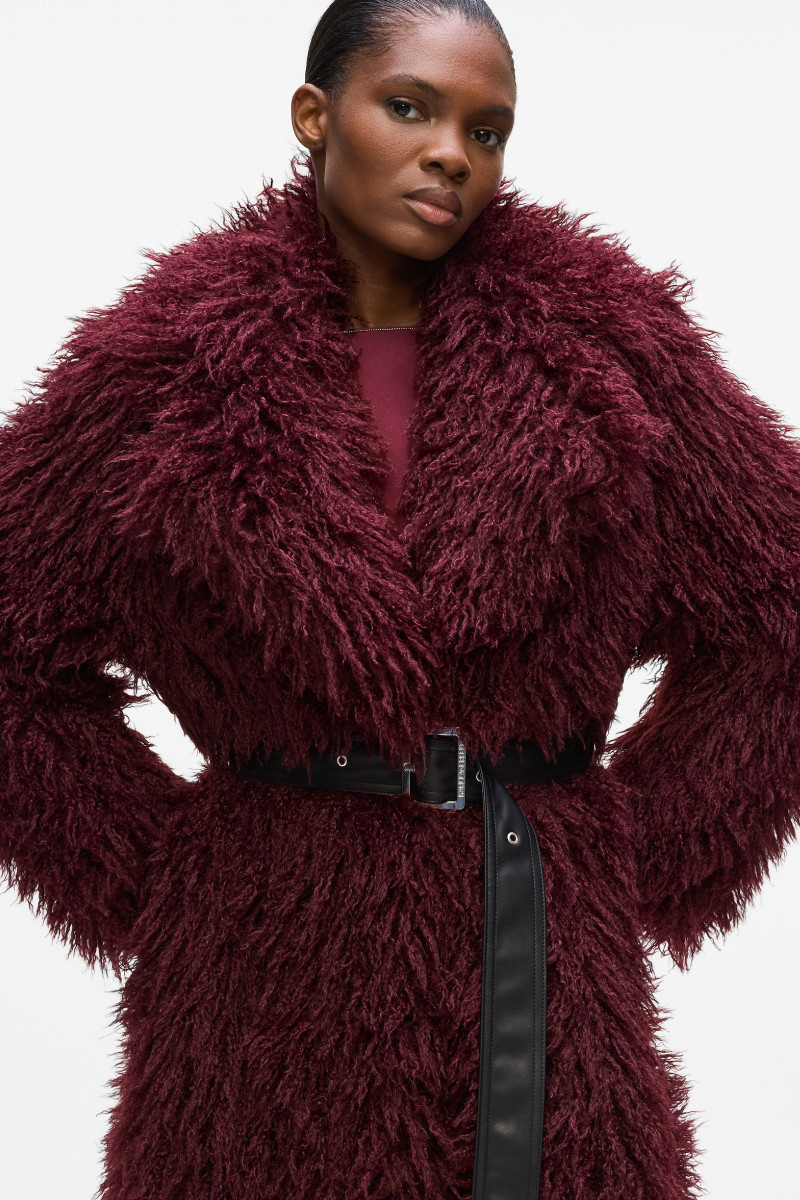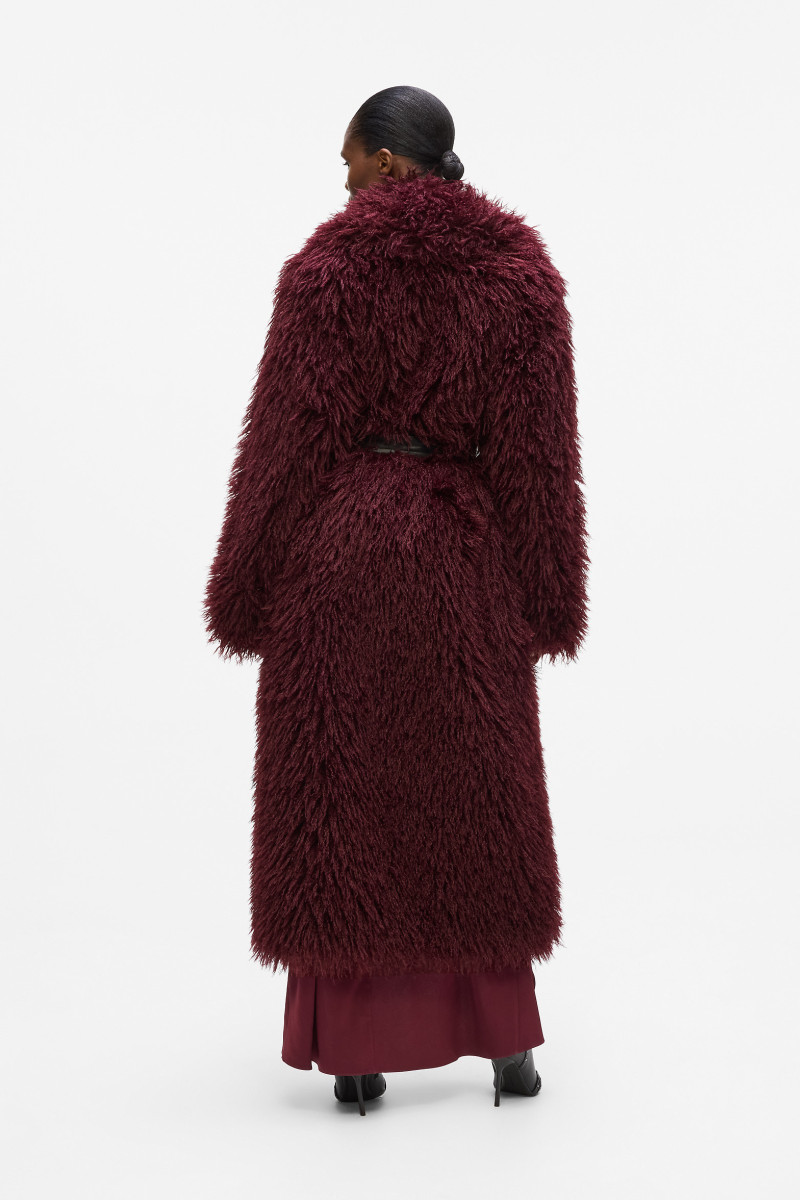 KABÁT KARL LAGERFELD FAUX FUR FASHION LONG COAT WINDSOR BURGUNDY
