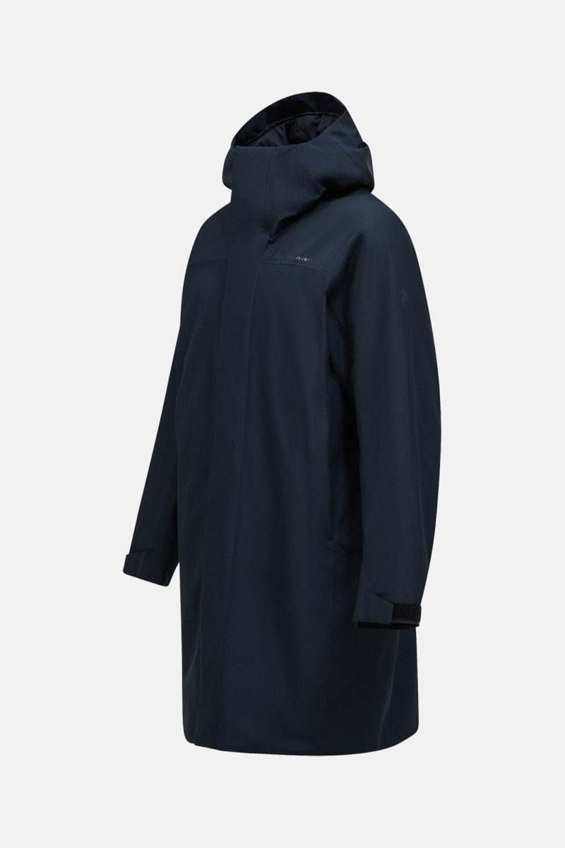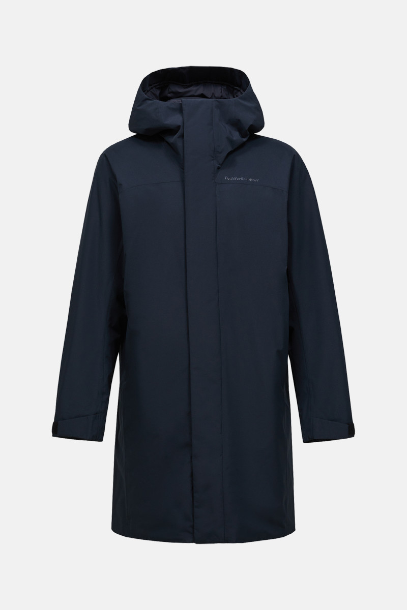 Pánský kabát s kapucí. Volný střih, logo značky na rameni, nastavení kapuce jednou rukou, kapsy na ruce na zip, vnitřní kapsa a nastavitelné spodní okraje rukávů na suchý zip. Kabát je vyroben z lehké, odolné a prodyšné tkaniny HIPE® bez PFC, která poskytuje skvělou ochranu proti vodě a větru, zároveň je prodyšná. Prodyšnost 10 000 g/m2/24h, vodní sloupec 10 000 mm. Velmi praktický kousek pro celoroční využití, který si zamilujete.