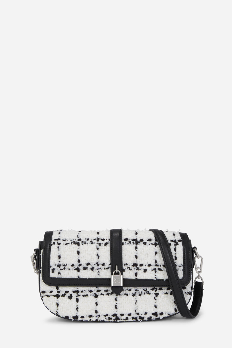 KABELKA KARL LAGERFELD K/AUTOGRAPH PADLOCK SB BOUCLE BLACK WHITE KARL BOUCLE