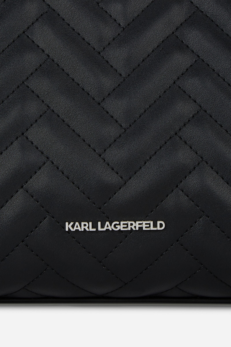 Dámská kabelka přes rameno ztělesňuje každodenní eleganci a doplňuje rafinovanou estetiku praktičností. Elegantní design v praktické siluetě zdobený prošívaným herringbone vzorem a kovovým logem Karl Lagerfeld na přední straně. Kabelka se zapínáním na zip doplněná dvěma pevnými uchy z technické kůže pro možnost nošení na rameni. Prostorný interiér doplněný bočním praktickým kapsou. Povrchový materiál tvoří odolná a dobře udržovatelná hladká technická kůže. Nepřehlédnutelný stylový doplněk, který dokonale doladí váš ležérní outfit.