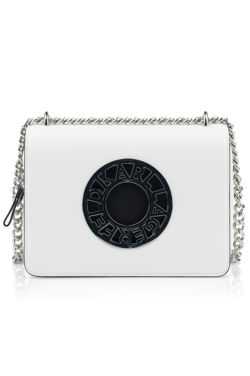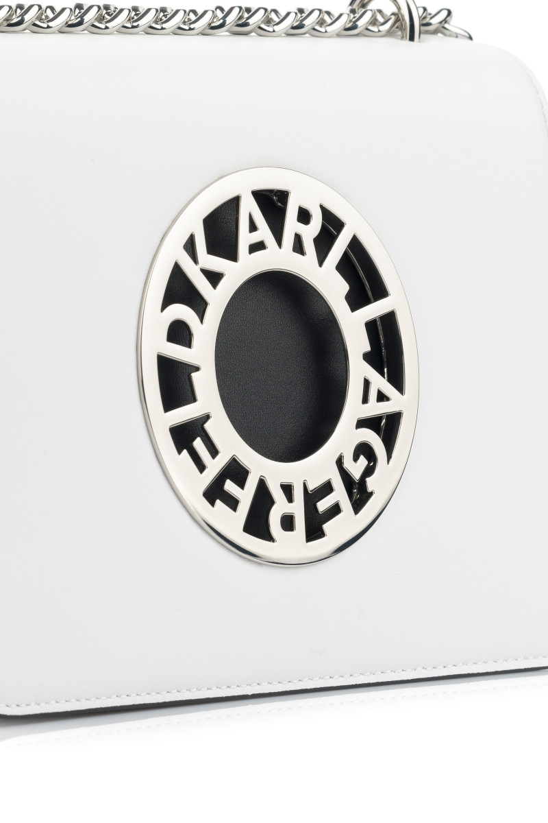 Elegantní kožená kabelka přes rameno má výrazné kruhové zapínání s logem inspirovaným archivním designem Karla Lagerfelda. Tento elegantní doplněk nabízí praktičnost na každý den díky nastavitelnému ramennímu popruhu z kůže a řetízku a vnitřní přihrádce na zip.