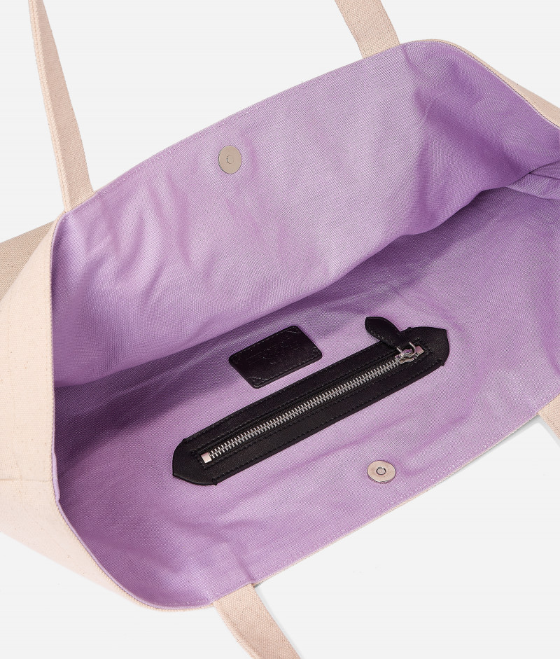 Legendární dvojice Karl a Choupette zdobí přední stranu této plátěné nákupní tašky. Lehký a bezstarostný styl je hravý díky výrazné vnitřní látce plné barev.
