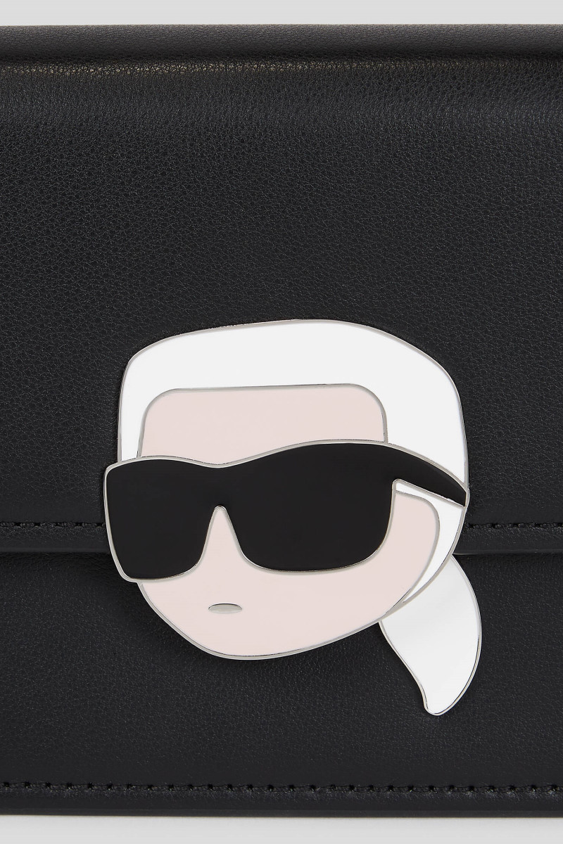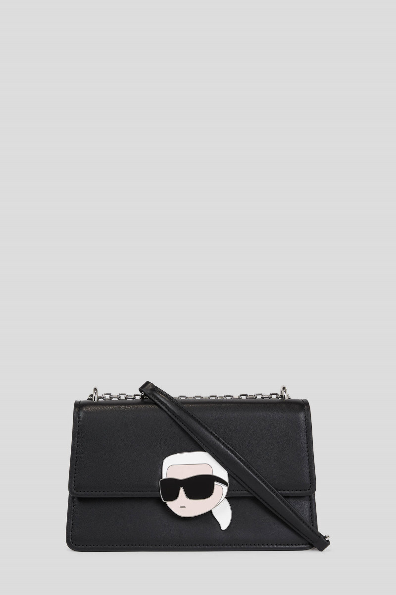 Dámská kožená kabelka vyrobená z hladké hovězí kůže zdobená logem Karla Ikonika na klopě. Zdobí ji kožený řemínek s řetízkem, který je nastavitelný a lze jej nosit na více způsobů. Zapínání kabelky na klopu. Hravá sofistikovaná kabelka pro váš každodenní outfit.
