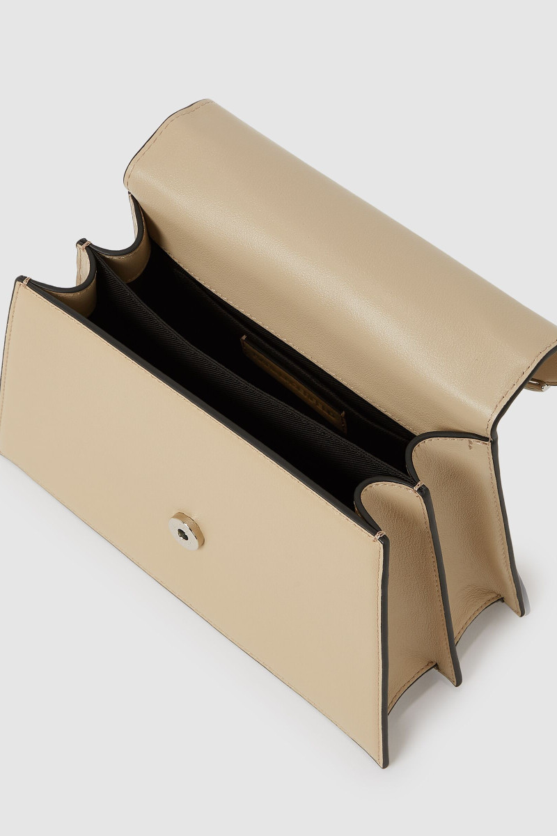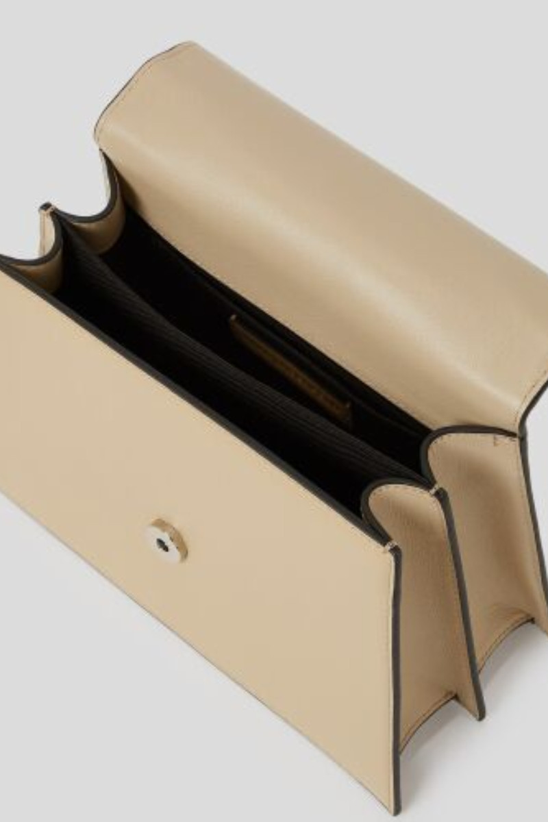 Dámská kožená crossbody kabelka K/SIGNATURE je charakteristická svým lichoběžníkovým tvarem a zkoseným logem na klopě, která se zapíná na magnet. Vyrobena z kvalitní hovězí kůže. Hladká hovězí kůže prémiové kvality je velmi pevná a odolná, přitom si zachovává svůj luxusní vzhled. Kabelka je vybavená odnímatelným řetízkem a hladkým koženým popruhem pro univerzální styling. Nesporně elegantní a vždy praktický doplněk vašich outfitů.