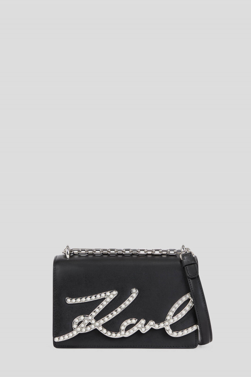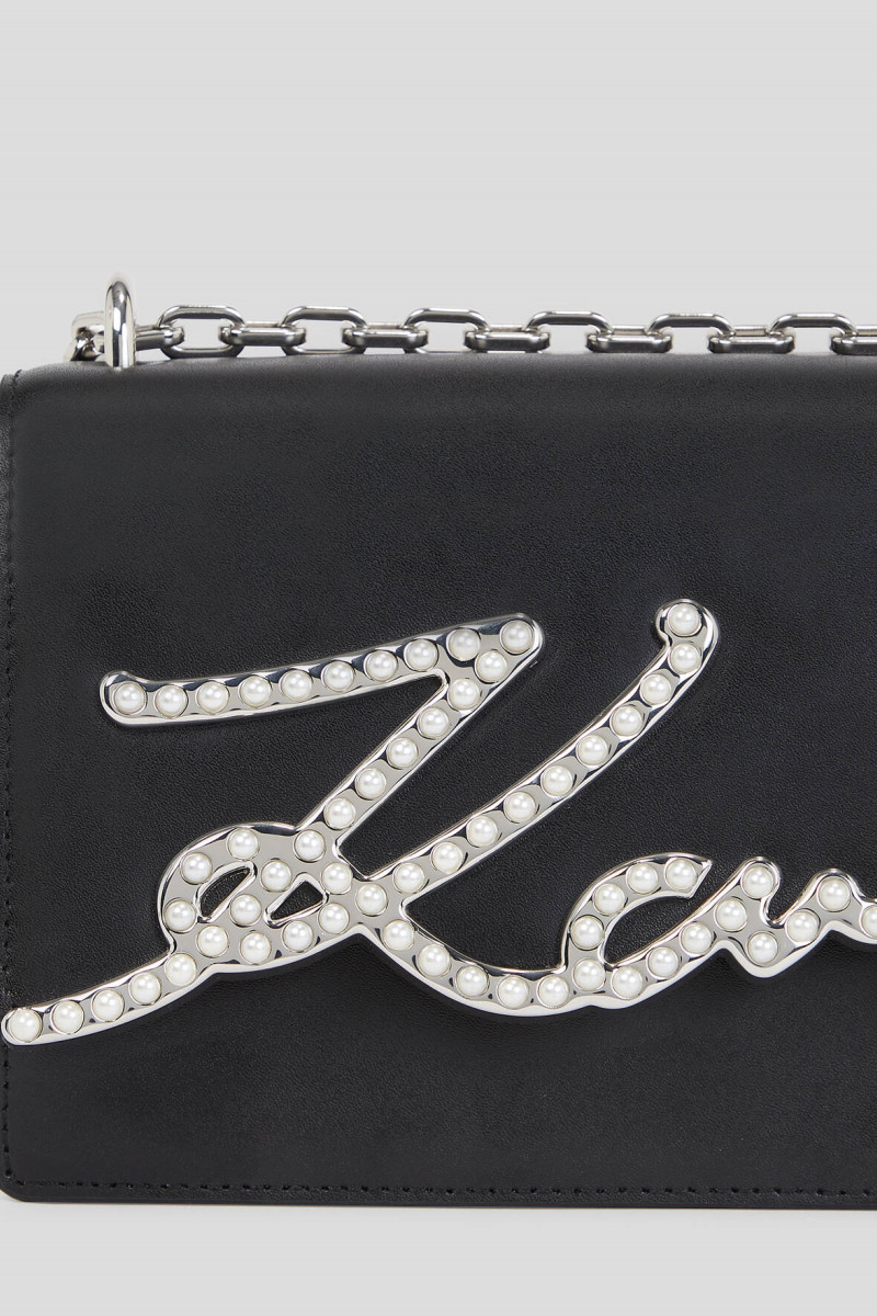 Na prázdninovou sezónu se vrací za všech okolností stylová kabelka z řady K/Signature, tentokrát opulentně vyzdobená perlami. Ramenní popruh z kůže a řetězu obohacují ikonický styl o nádech rock-chic, nezaměnitelně typický pro značku KARL.