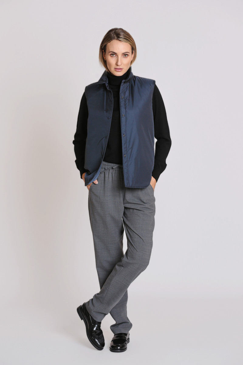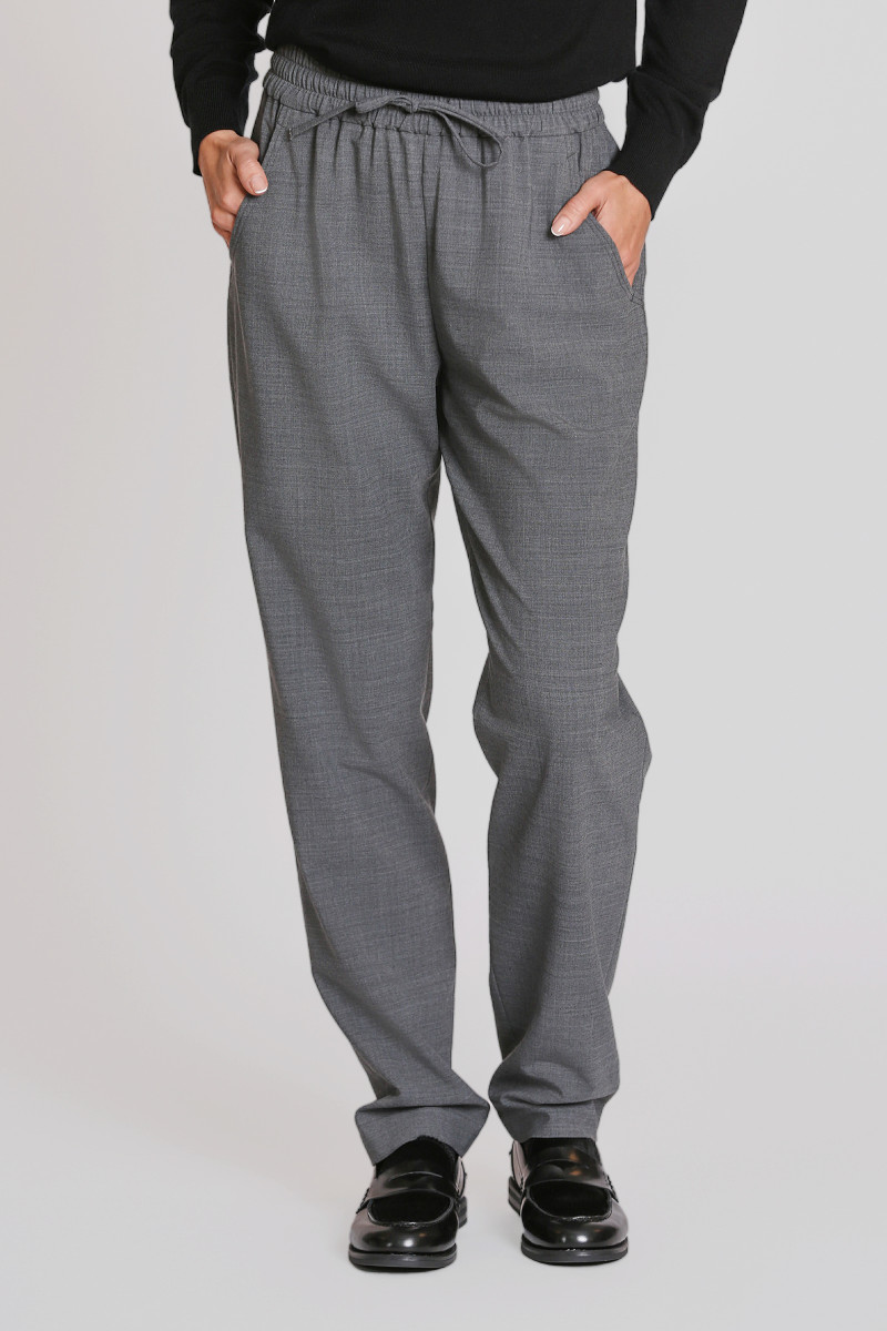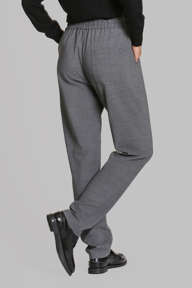 Dámské kalhoty z pohodlné vlněné směsi. Ležérní design s pružným pasem a šňůrkou na stažení doplňuje diagonální přední kapsa a zadní kapsa s nášivkou. Lehká flanelová tkanina v kvalitním materiálovém složení zaručuje maximální komfort při nošení a jednoduchou údržbu. Dokonale stylový kousek, který skvěle doladí váš neformální outfit.