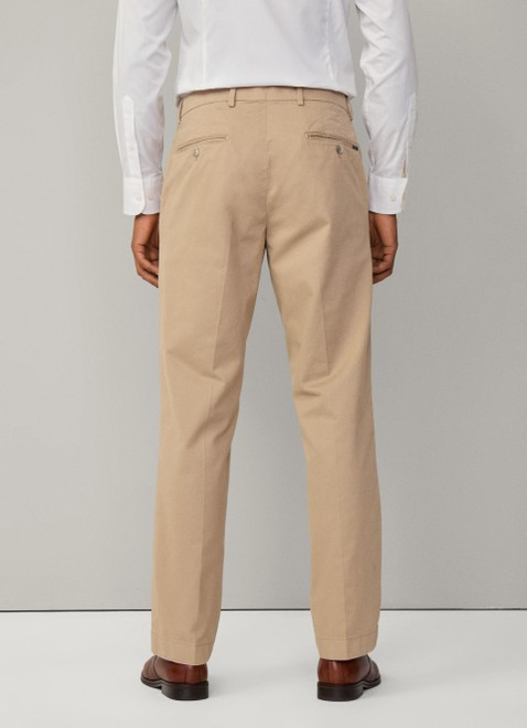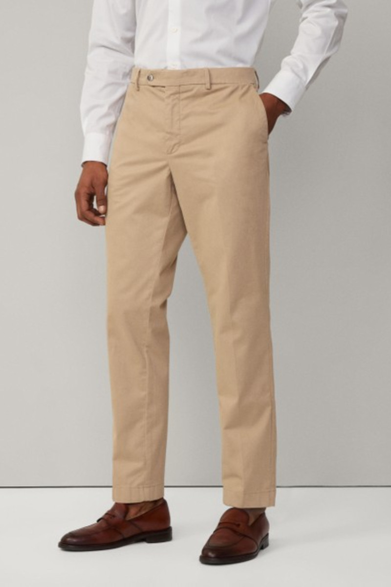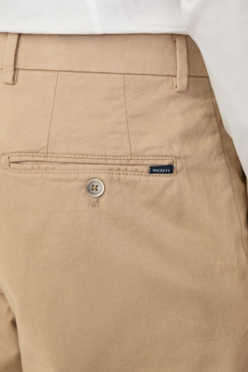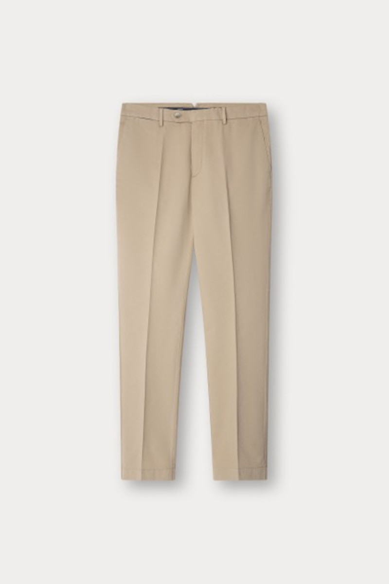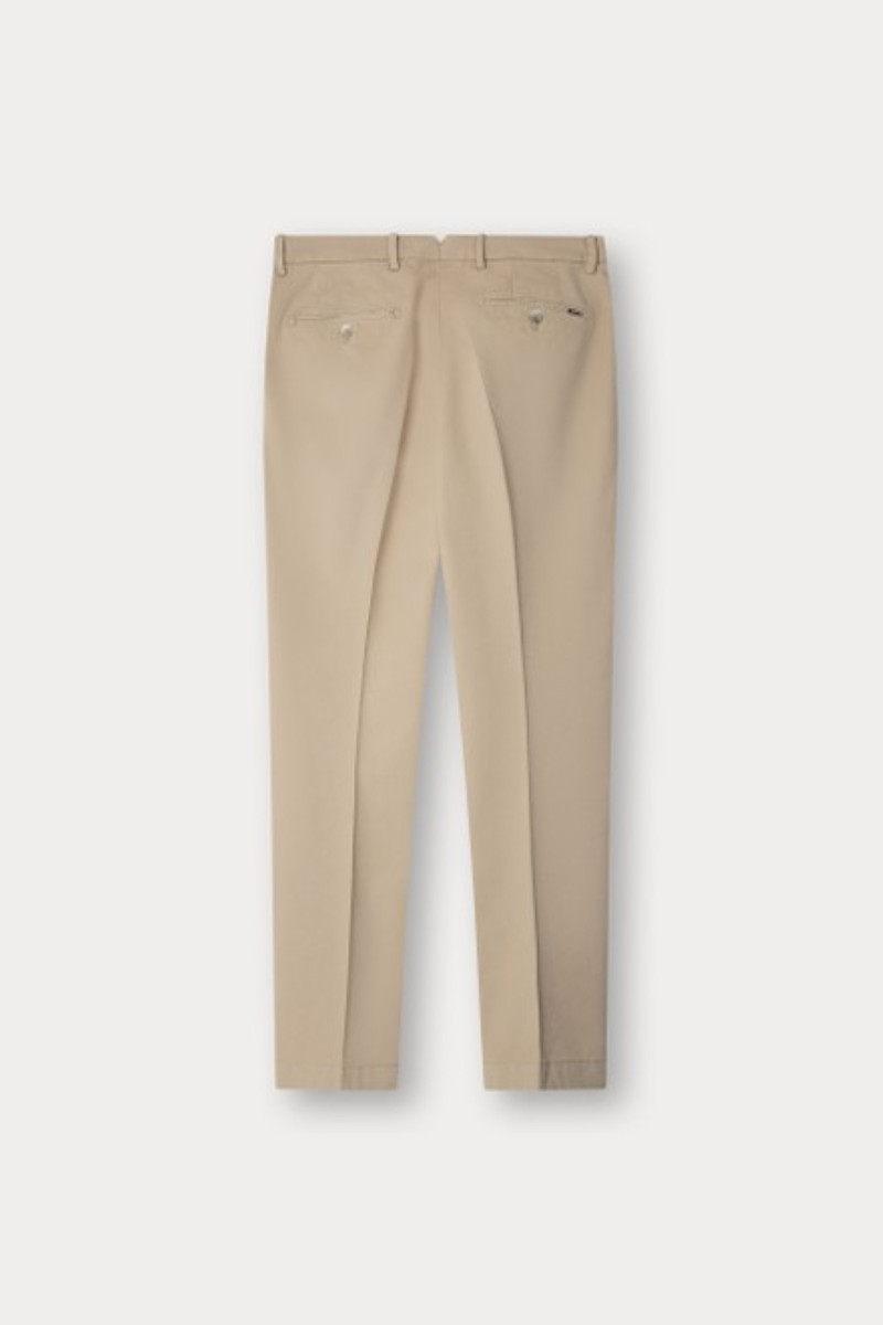 Pánské plátěné kalhoty se šikmými bočními kapsami. Rovný střih nohavic doplňuje standardní výška pasu s propracovaným šitím a elegantním kalhotovým zapínáním. Nechybí poutka na opasek ani dvě zadní výpustkové kapsy na knoflík, jenž doplňuje drobná kapsa na mince umístěná v přední části. Materiálové složení odolné, na omak však příjemně měkké tkaniny je tvořeno bavlněným vláknem prémiové kvality s příměsí elastanu, který zajišťuje kalhotám pružnost a dlouhodobou tvarovou stálost. Velmi pohodlný základ ležérně-elegantního stylingu, který nesmí chybět v žádném šatníku.