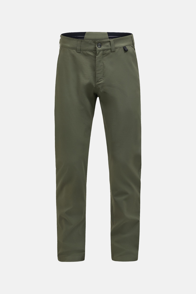 Pánské nadčasové kalhoty chino střihu . Přiléhavý střih, klasické kalhotové zapínání s poutky na pásek, boční otevřené kapsy, zadní lemované kapsy, protiskluzová guma uvnitř pasu. Potisk Peak Performance na zadní straně a kovové logo P na skládaném pásku. Materiálové složení je z nepromokavé, vodoodpudivé a pružné látky, která zaručuje maximální pohodlí a pohyblivost. Kalhoty jsou vyrobeny z částečně recyklovaných syntetických vláken. Celkové zpracování zaručuje dokonalý komfort během nošení a skvělé funkční vlastnosti. Praktický a stylový kousek vhodný nejen na golf.