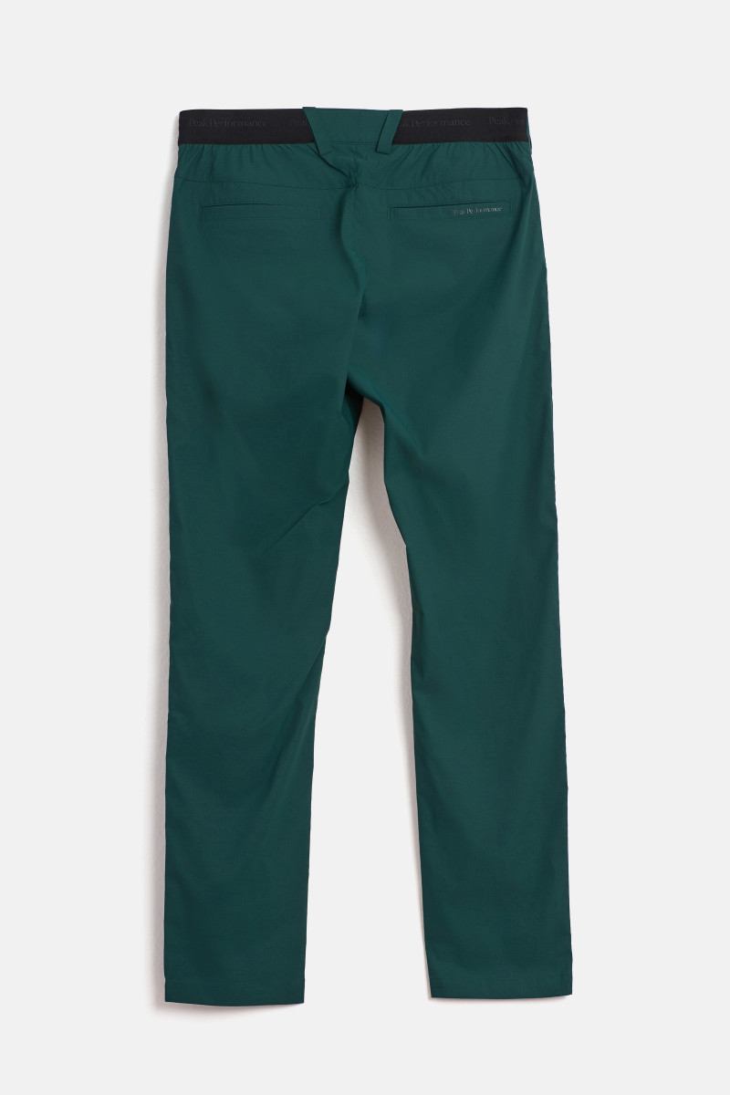 Pánské nadčasové kalhoty ve střihu chino. Přiléhavý střih a klasické zapínání kalhot s poutky na opasek doplňují boční otevřené kapsy, zadní lemované kapsy pro lepší uschování vašich věcí a protiskluzová guma uvnitř pasu s potiskem Peak Performance na zadní části a kovové P logo na skládaném popruhu. Materiálové složení z voděodolné, voděodpudivé a pružné látky zaručuje maximální pohodlí a mobilitu. Kalhoty jsou vyrobeny z částečně recyklovaných materiálů bez PFC z elastického technického materiálu s vlastnostmi rychlého schnutí a odvodu vlhkosti. Celkové zpracování zaručuje dokonalý komfort při nošení a skvělé funkční vlastnosti. Praktický a stylový kousek vhodný nejen na golf.