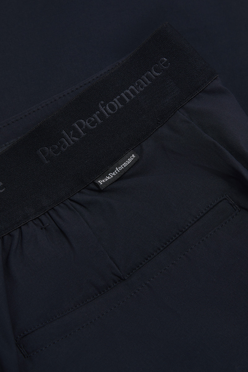 Dámské nadčasové kalhoty chino střihu. Přiléhavý střih a klasické kalhotové zapínání s poutky na opasek doplňují boční otevřené kapsy, zadní lemované kapsy pro lepší uložení vašich věcí a protiskluzová guma uvnitř pasu s potiskem Peak Performance na zadní části a kovovým P logem na skládaném popruhu. Materiálové složení je z voděodolné, voděodpudivé a pružné látky, která zaručuje maximální pohodlí a mobilitu. Kalhoty jsou vyrobené z částečně recyklovaných materiálů bez PFC z elastického technického materiálu s vlastnostmi rychlého schnutí a odvodu vlhkosti. Celkové zpracování zaručuje dokonalý komfort při nošení a skvělé funkční vlastnosti. Praktický a stylový kousek vhodný nejen na golf.