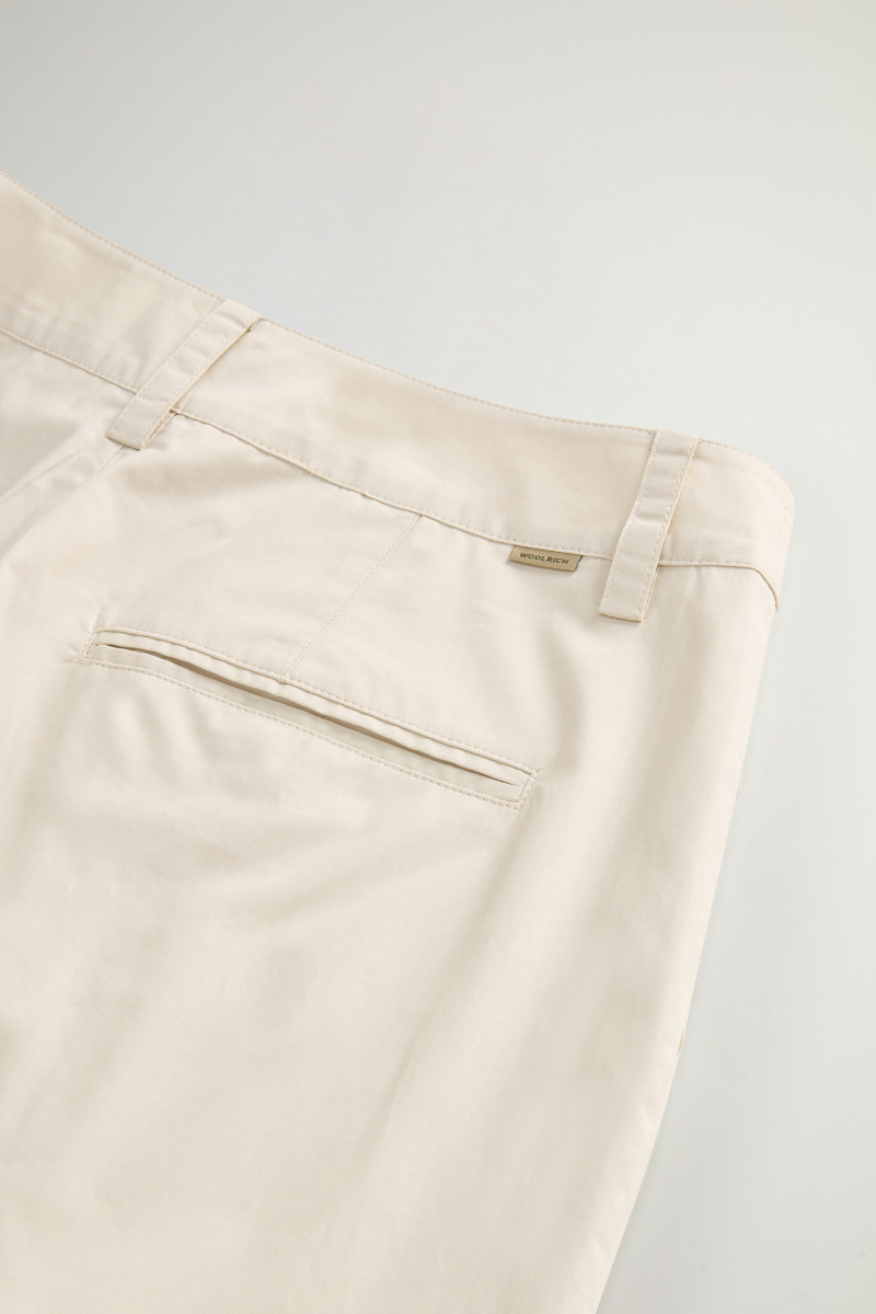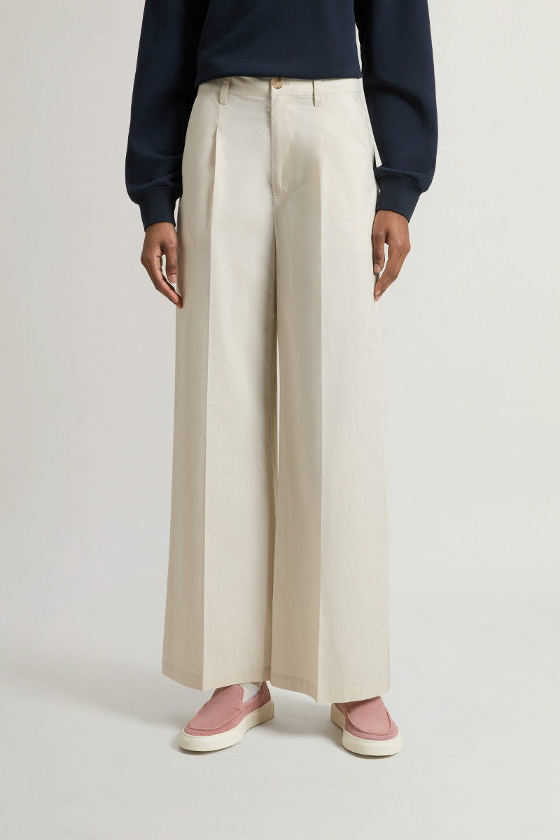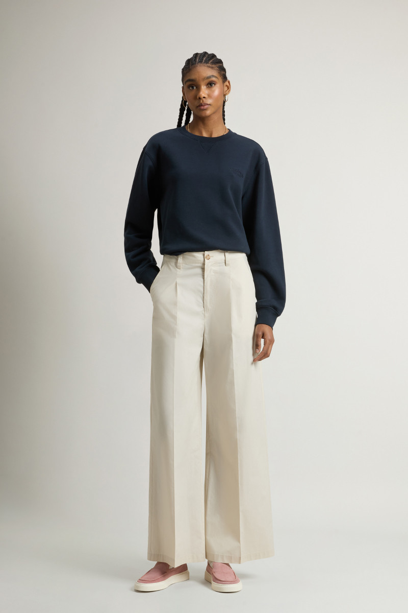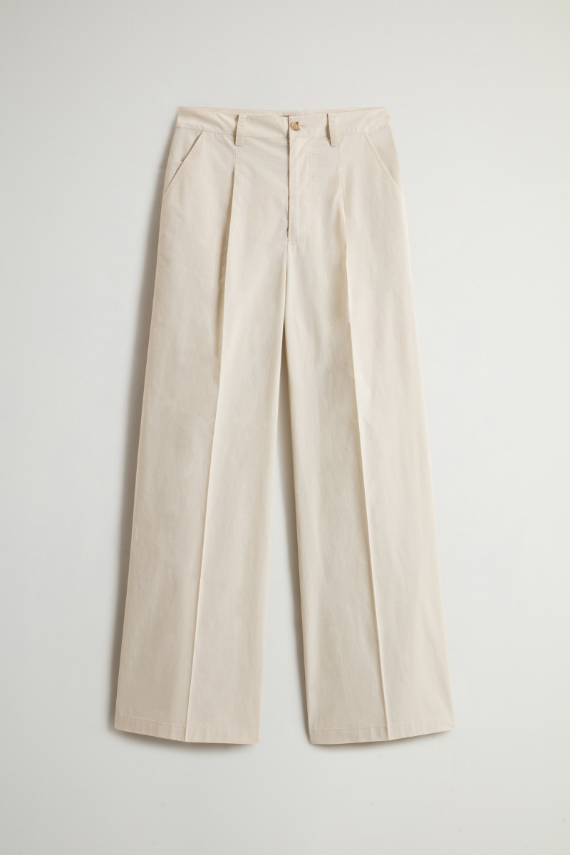 Dámské kalhoty z velmi lehkého bavlněného materiálu. Rovný střih se středně vysokým sedem, poutky na opasek a klasickým kalhotovým zapínáním na knoflík a zip doplňují boční klínové a zadní výpustkové kapsy. Kalhoty jsou na předním díle opatřeny sámky pro větší volnost nohavic. Nechybí decentní label s logem Woolrich umístěný na zadní straně. Jemná popelínová tkanina z prémiové bavlny zaručuje dokonalou prodyšnost, lehkost a příjemný pocit při nošení. Výborně kombinovatelný kousek, který stylově doladí váš sportovně-elegantní outfit.